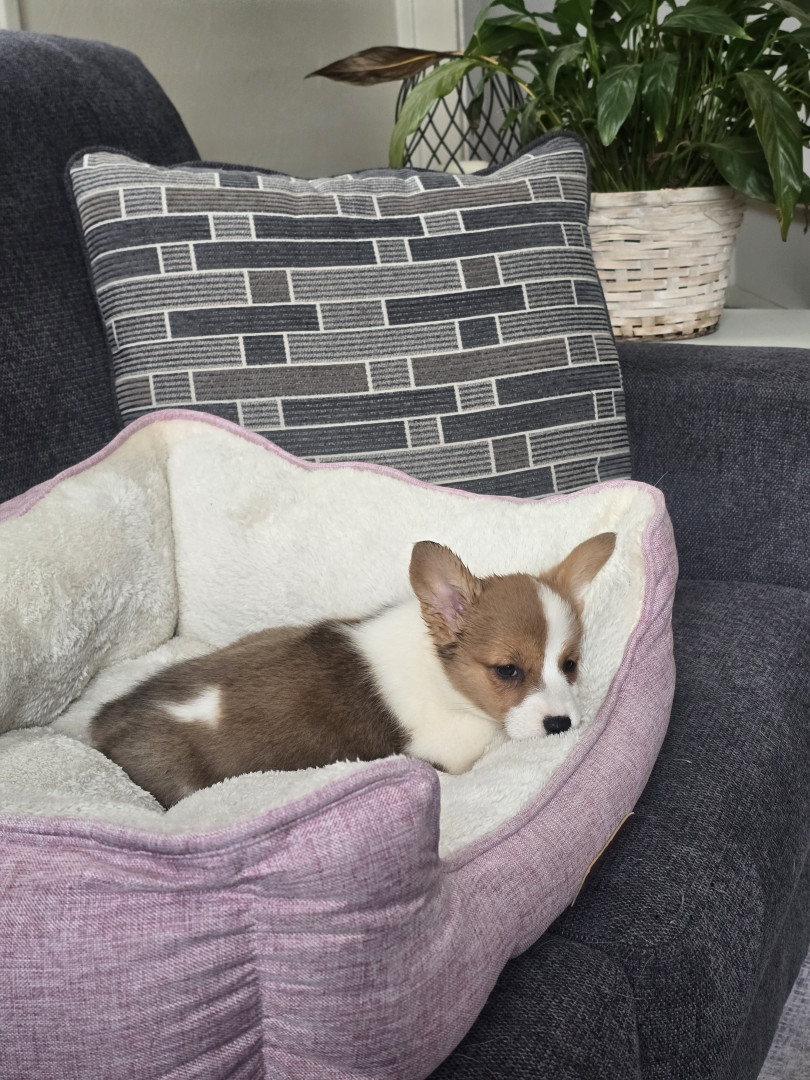 Maple just came home to her forever family at 8 weeks old. She already loves playing with her 2 year old Corgi sister and is the sweetest pu