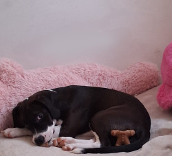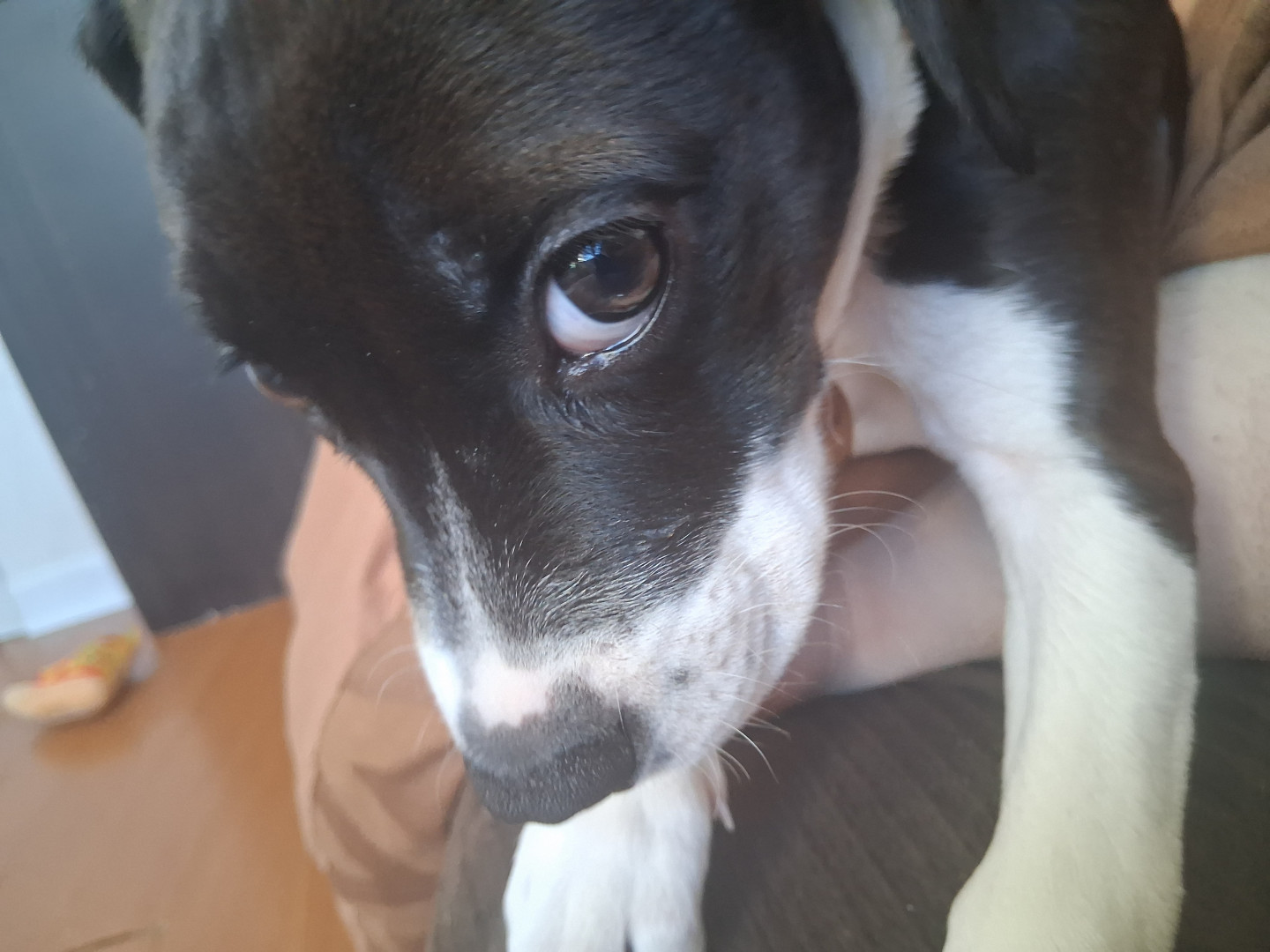 She’s cute and very play ful she eats a lot and loves to still treats and she doesn’t really like to listen nor be alone