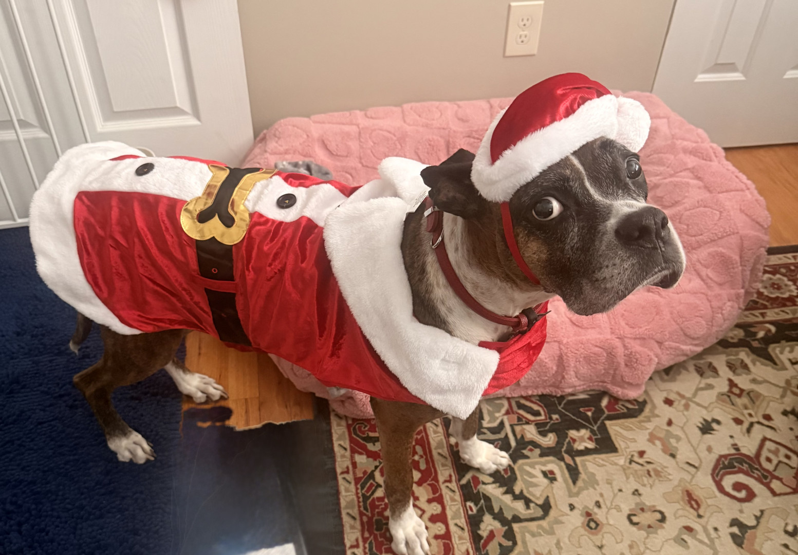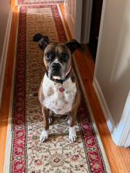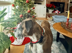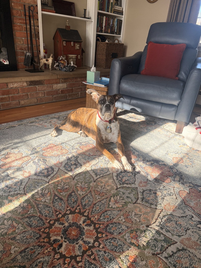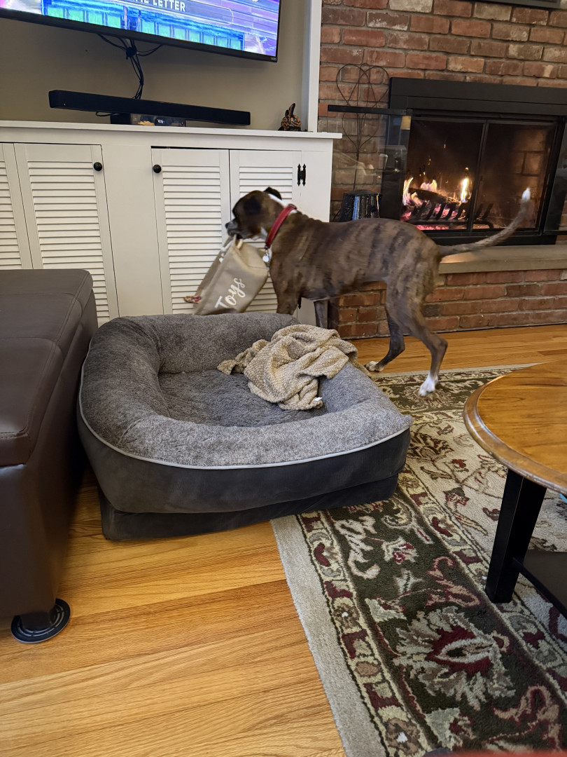 Marley has so many great qualities, but by far her ability to socially adapt to new situations. She went from living on the streets to a vets office for 2+ months to my house a week before Thanksgiving 2024. She came into my house like she’d been a part of the family forever. She loves all people and I hope she can make some doggy friends soon.