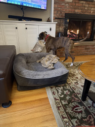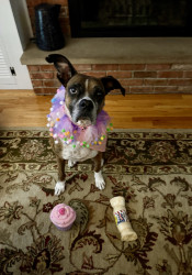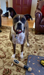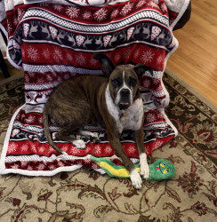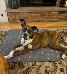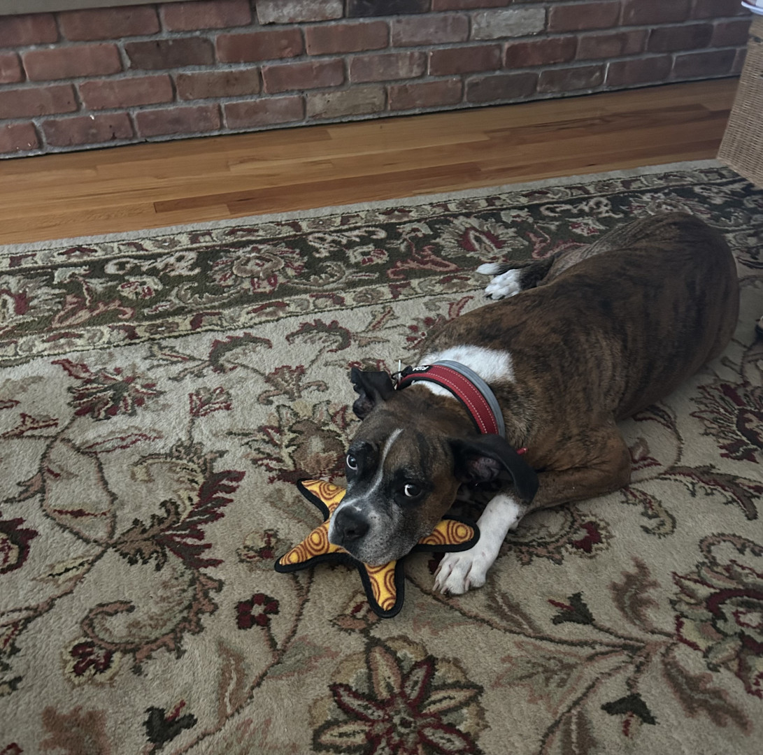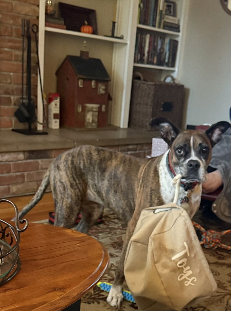 Receive Text UpdatesMarley loves food period! She’s on a healthy diet due to her cancer. Current favorite treats are beef chips or beef/turkey jerky treats. She loves her Jolly Egg, Christmas stuffed toy and tennis ball. But mostly likes to take her toy basket and flip it around. I could have saved a lot of money on toys 😊