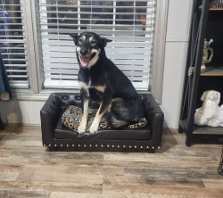 She is super cute with her black and tan markings. She is not a bougie boutique dog but she is smart and super sweet with family and new friends.