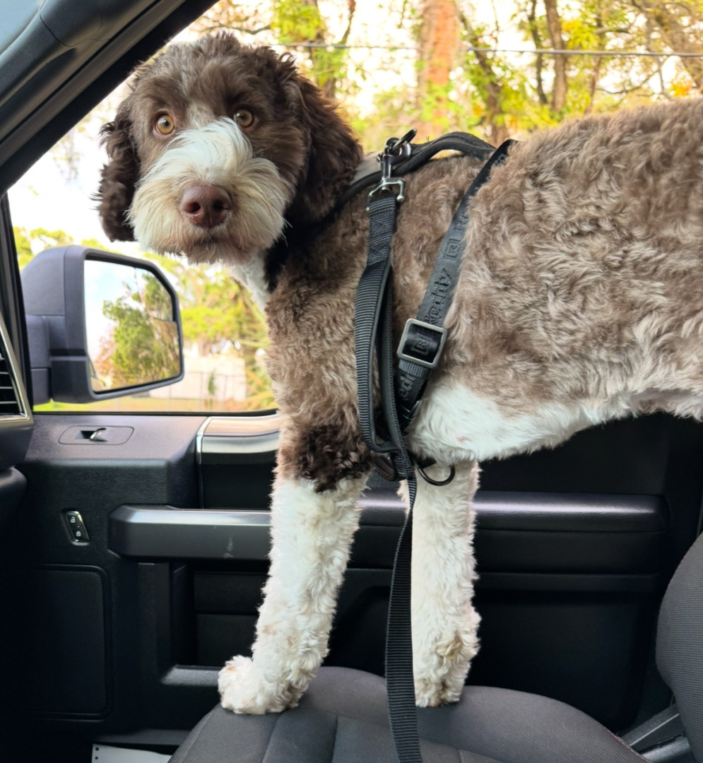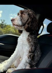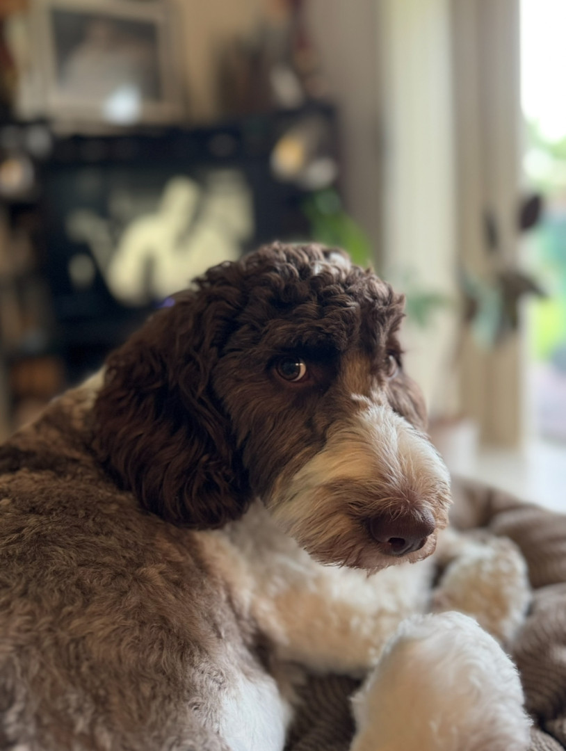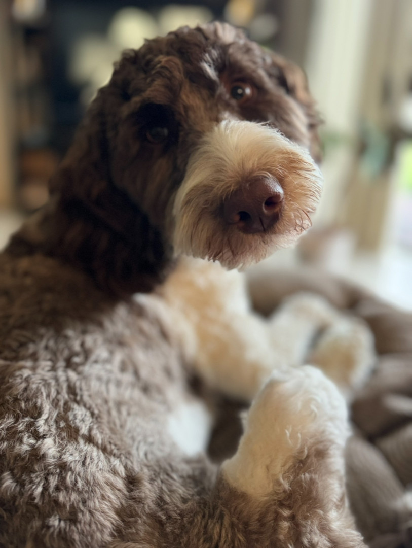 Bundle of energy and affection—smart, eager to please, always ready for adventure. She has the most expressive eyes, a goofy personality.