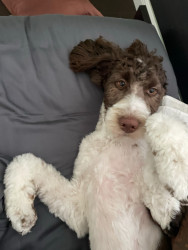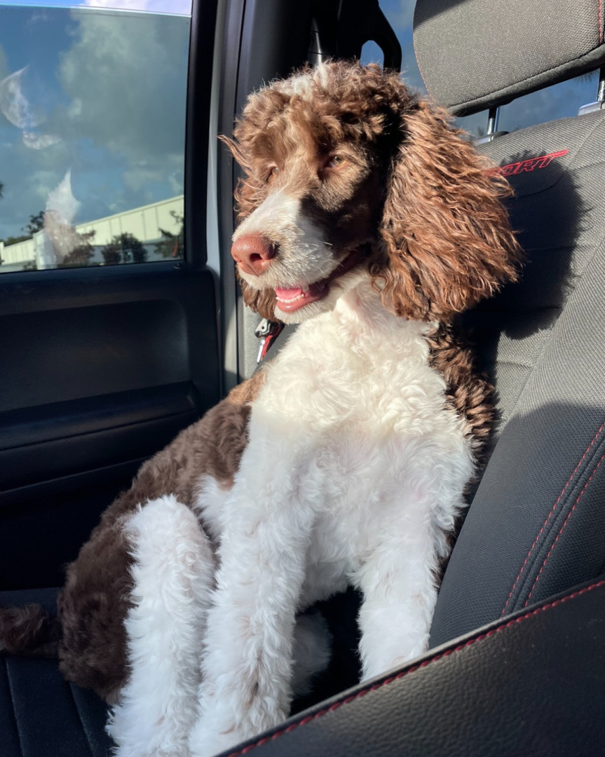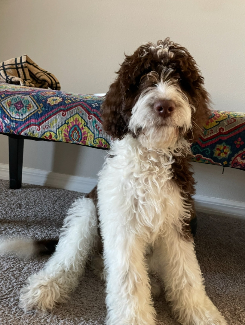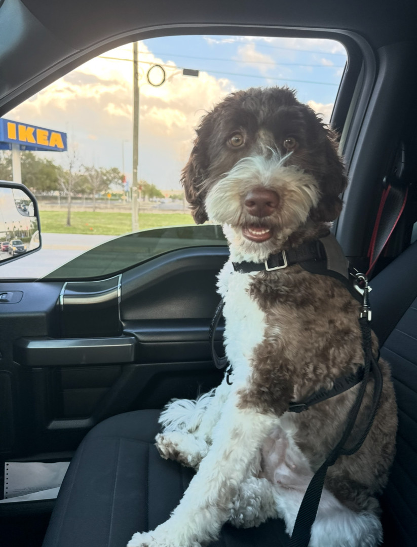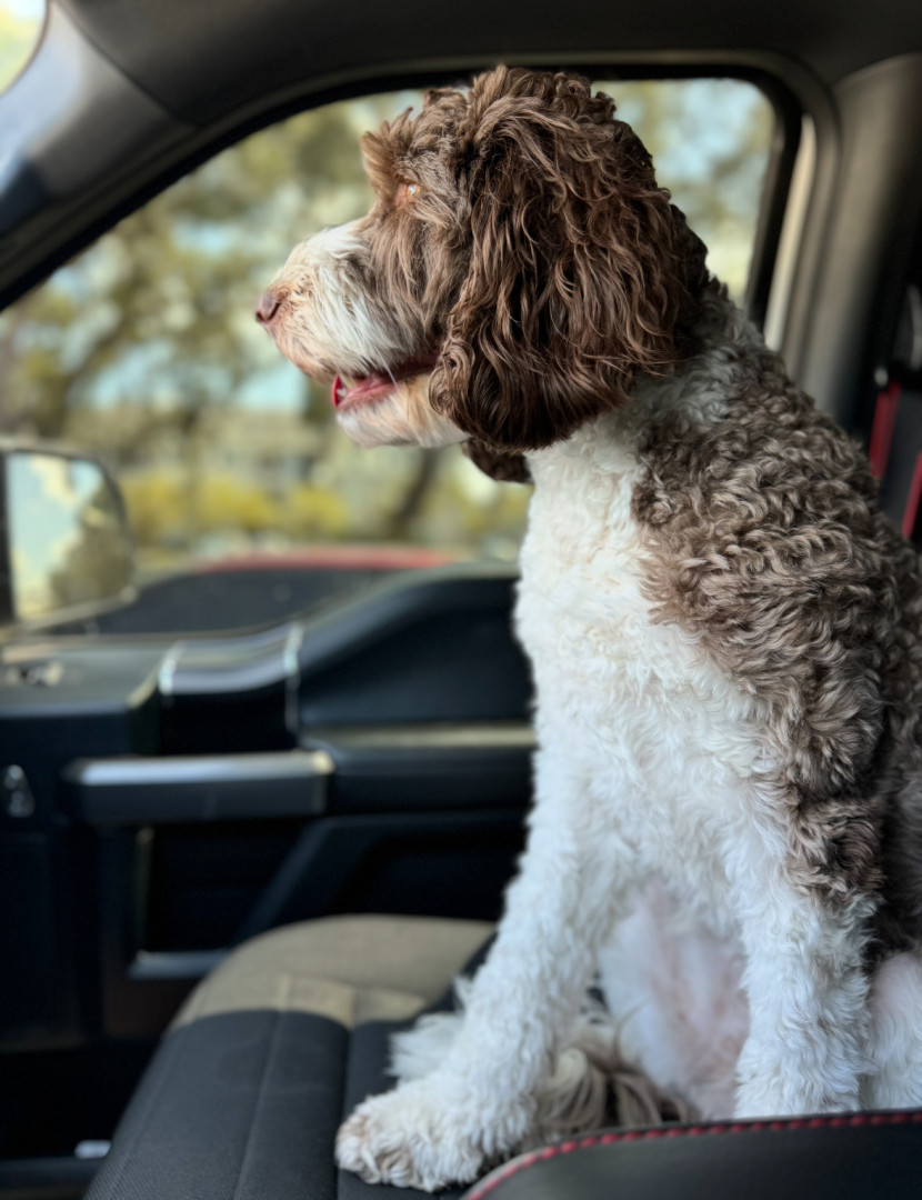 Bundle of energy and affection—smart, eager to please, always ready for adventure. She has the most expressive eyes, a goofy personality.