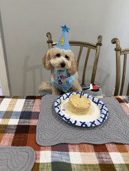 Marley is a mini goldendoodle, he turn 1yr on December 20th, he is a sweet dog, he loves to play with his toys. He loves to be cuddled.