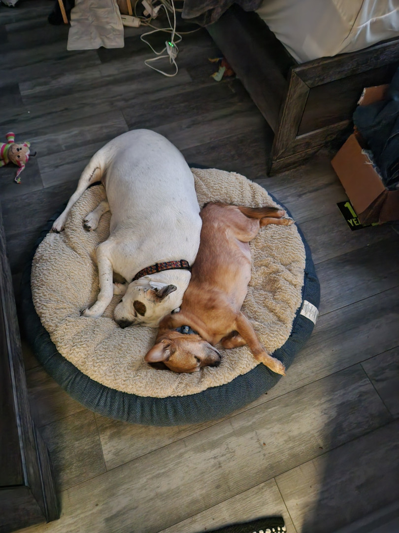 He is a 15-year-old puppy who gets the Zumiez at only 2:30 a.m. he has endured the loss of 3 siblings but never ceases to be goofy, & cuddly