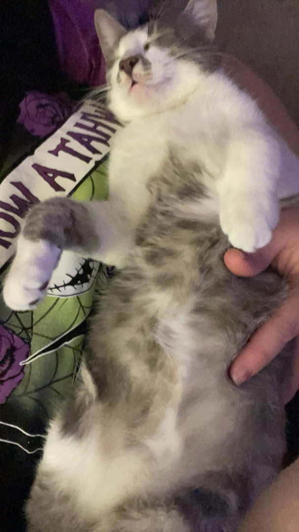 She is a loving cat has a lovely personality will do just about anything for attention she loves her hair brushed love playing with toys and