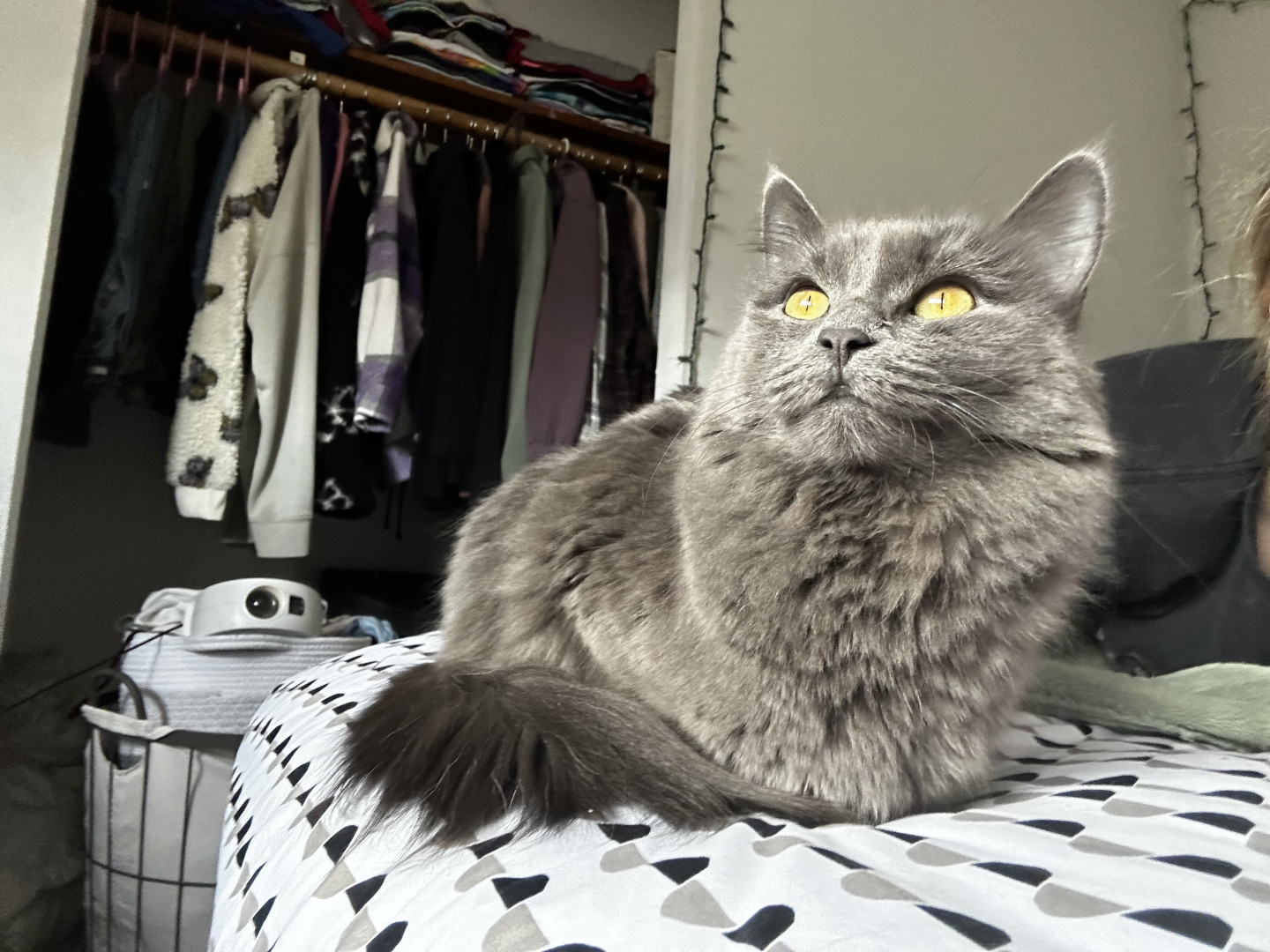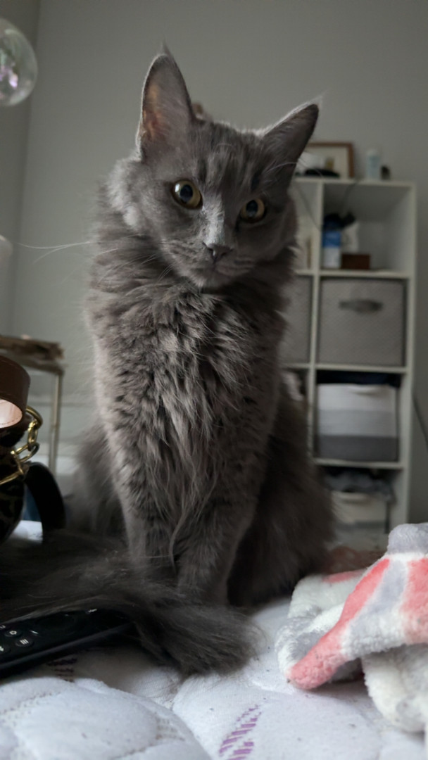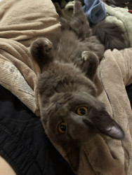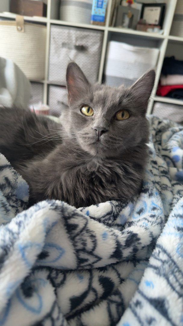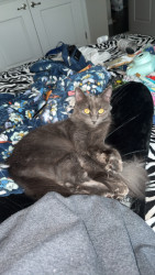 Mars is a nebelung which is a long haired Russian blue!! Rescued from the streets totally feral but with patience she really became the sweetest girl in a short amount of time!