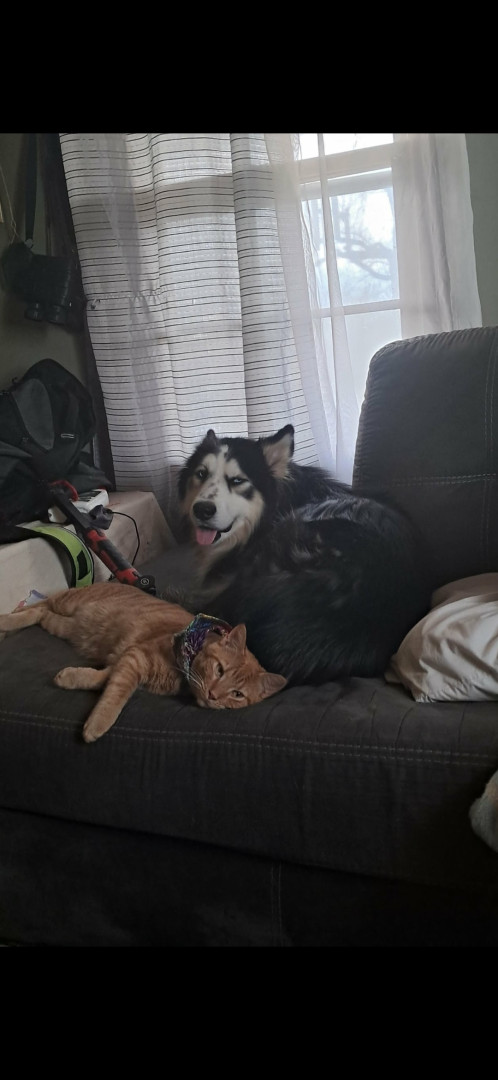 Cause he is cute. And the only cat in our house. He loves our huskey. And sleeping on our bed.