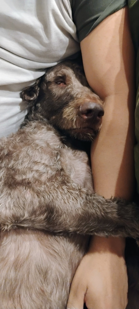 He is a welcoming committee, every time I get home from work he comes in between my legs and does circles while I pet him. He is also very smart and if we do training passed his patience he will stop accepting treats and lay down.