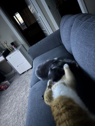 Kind and playful full of joy. He loves taking naps and socialize with the kids neighbours. Marvin is a lovely cat that loves to cuddle.