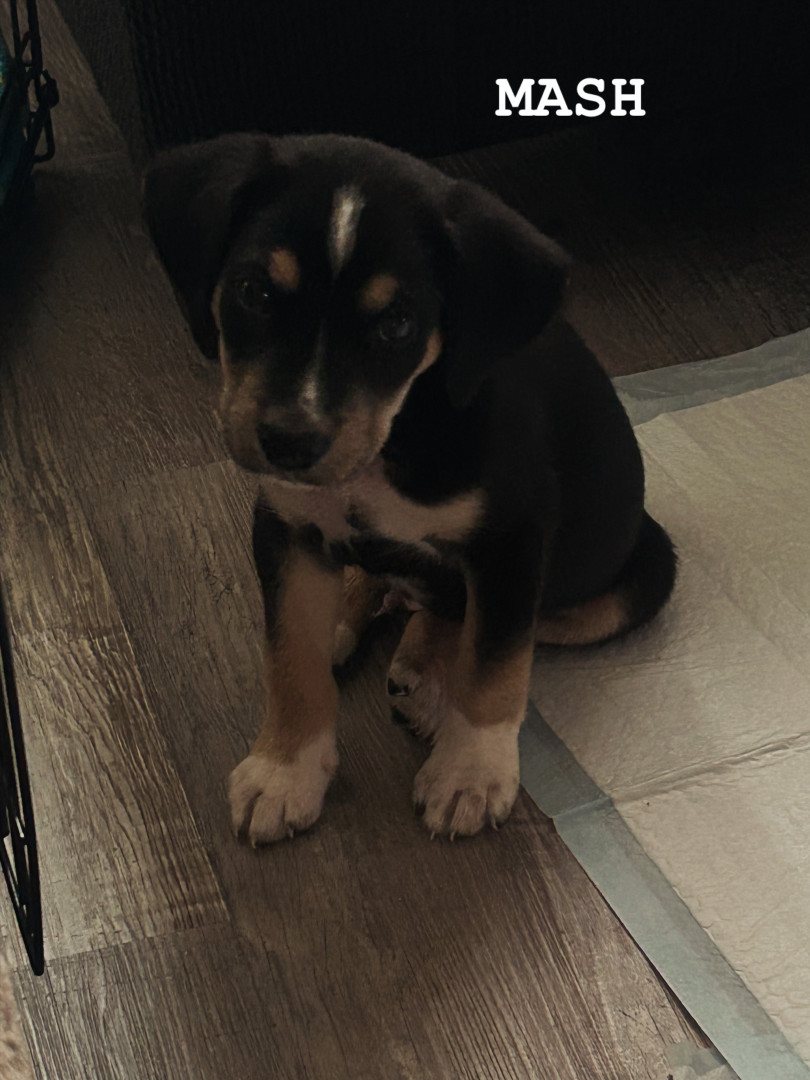 Mash is a happy, healthy, mischievous 3 month old coon hound puppy. He loves his squeaky stuffed animals and doggie treats!!