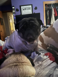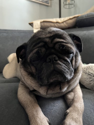 Learn MoreMason has a little stuffed pug called buddy that he has to have in his kennel with him. His favorite treat is any 3 dog barkery cookie