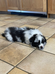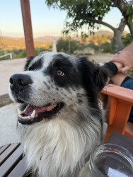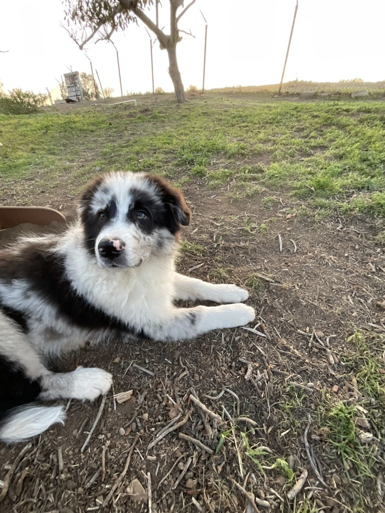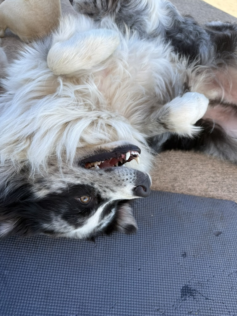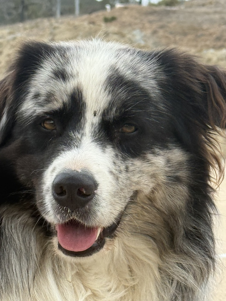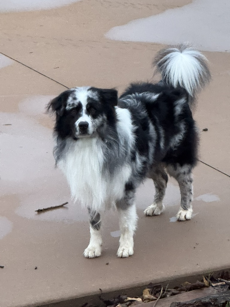 Maverick-laid back (not your typical Aussie/border) loving, and protective.. Loves hikes digging and carrying his giant huggle fleece bone.