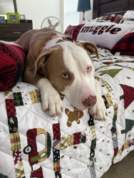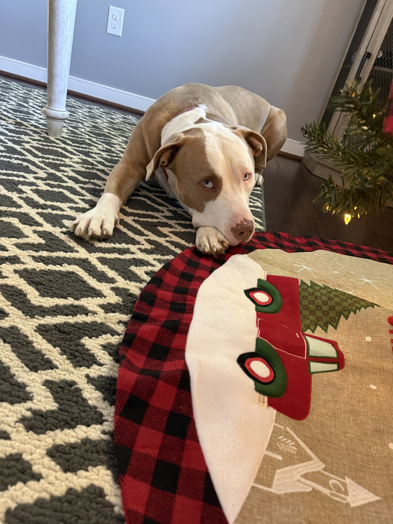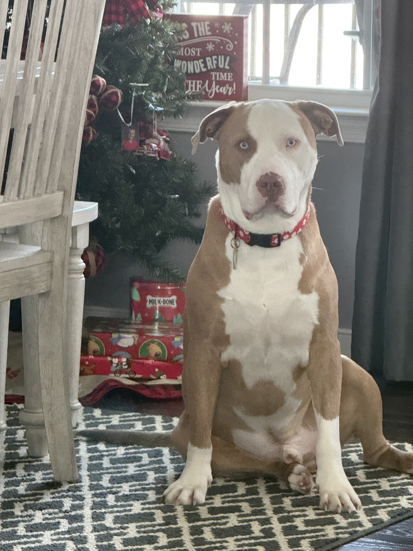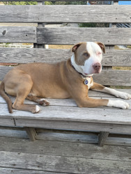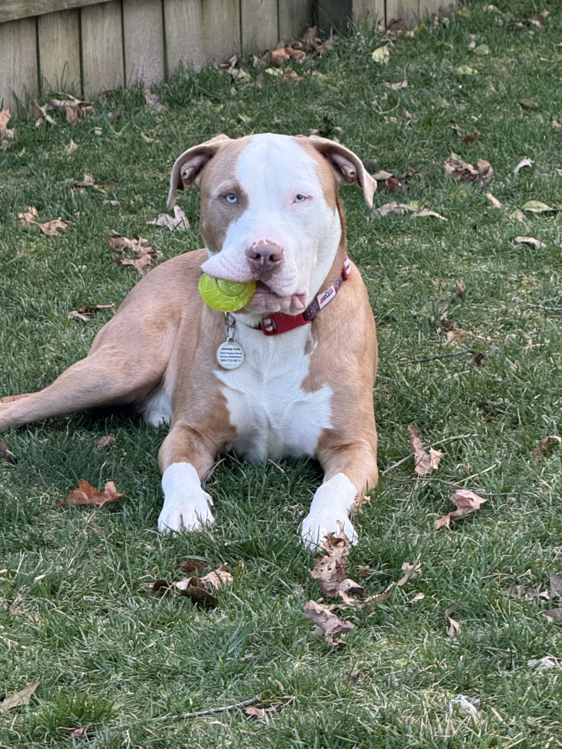 We rescued Maverick from the shelter. He is 2 & is the sweetest! He loves cuddles, walks, fetch & belly rubs!