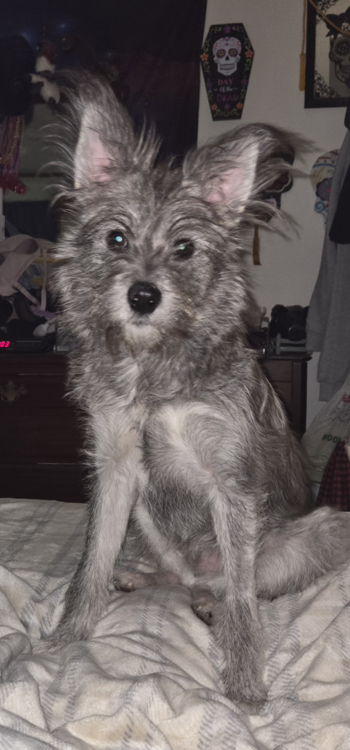 He is just a unique looking dog has a look of his own. Looks like an old man but he is a fun loving pup.