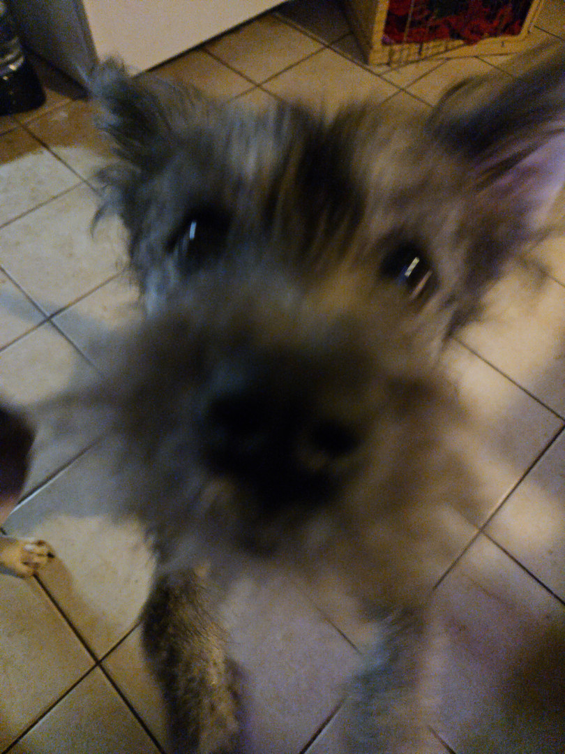 Funny, playful, loving and a goof ball. Keeps me on my toes.