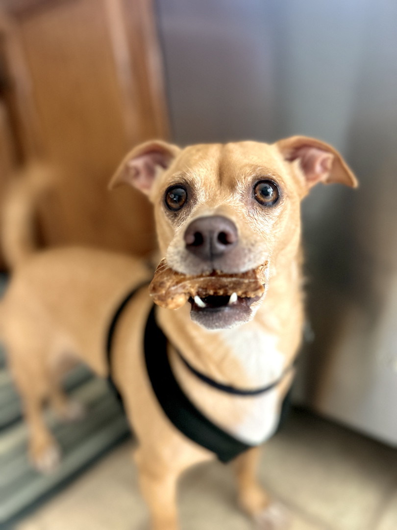 Learn MoreMaverick‘s favorite toy is this little pet giraffe it’s actually not a dog toy. It’s a baby toy. It’s one of his first toys we ever got him when he was rescued and we still have it and he still loves it as far as his go to treats you sure like to lick the plate when dad‘s done with his food But he does love hashbrowns from Dunkin’ Donuts. Sometimes I get his own hashbrowns just for him. Fav treats, he loves mini chewy milk bones & is referred to as our family dishwasher who loves to lick plates!