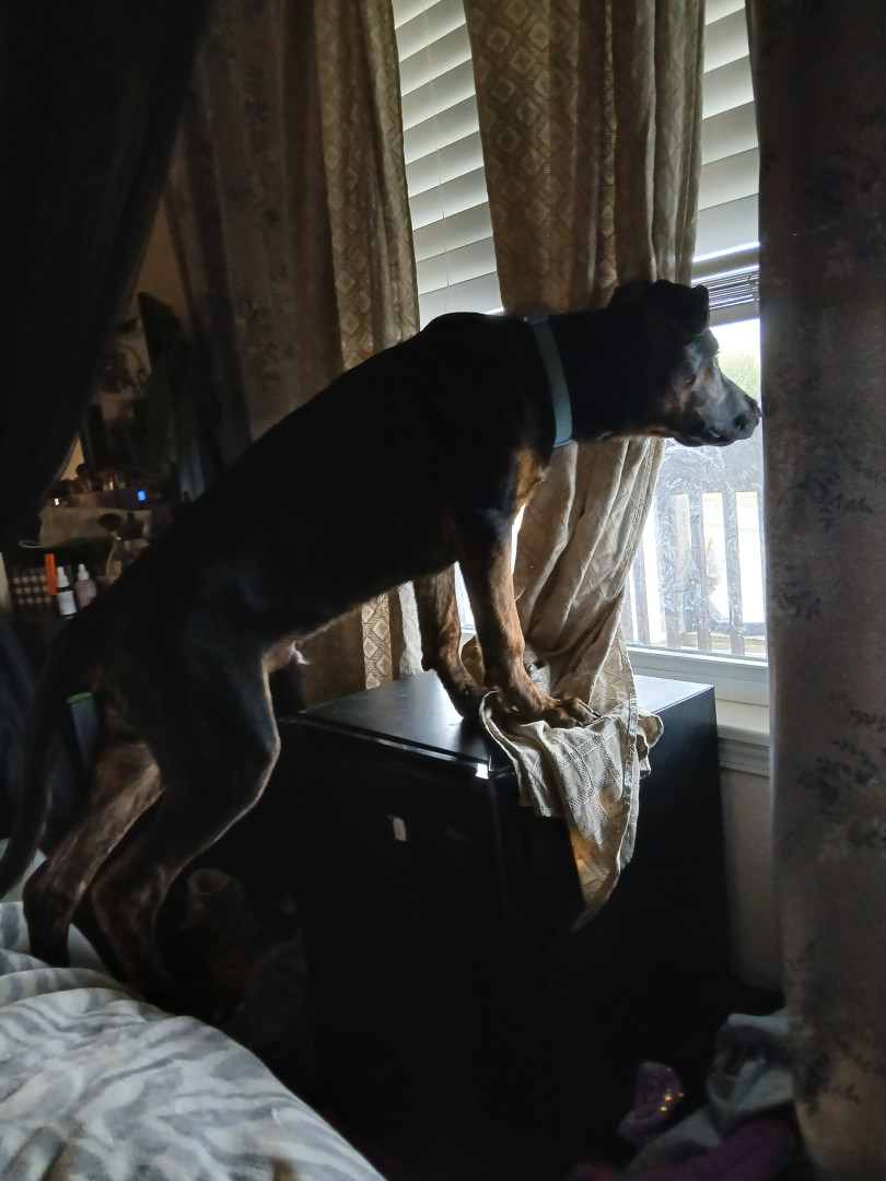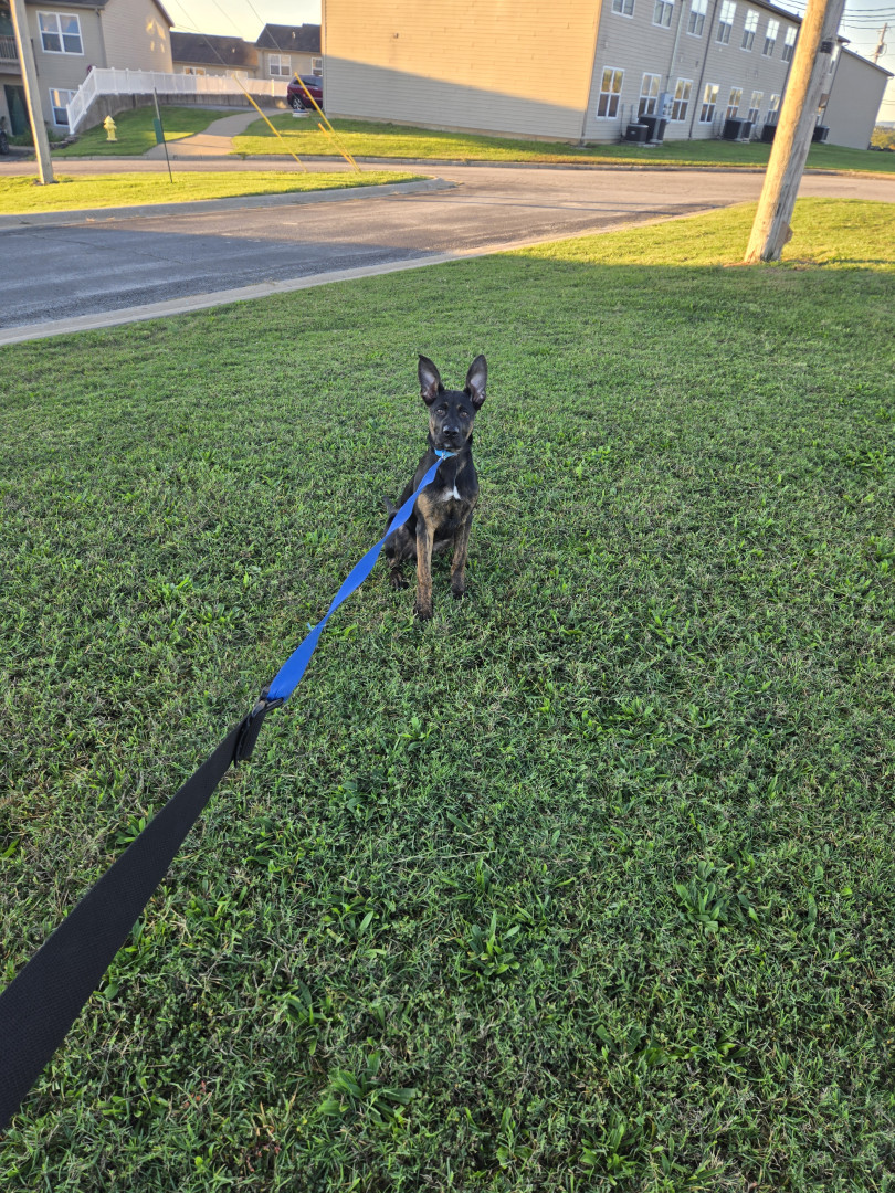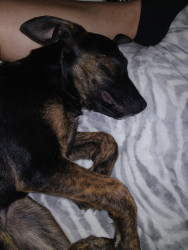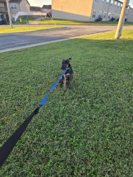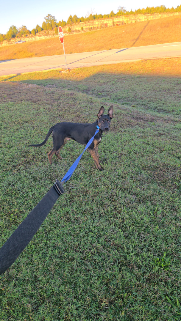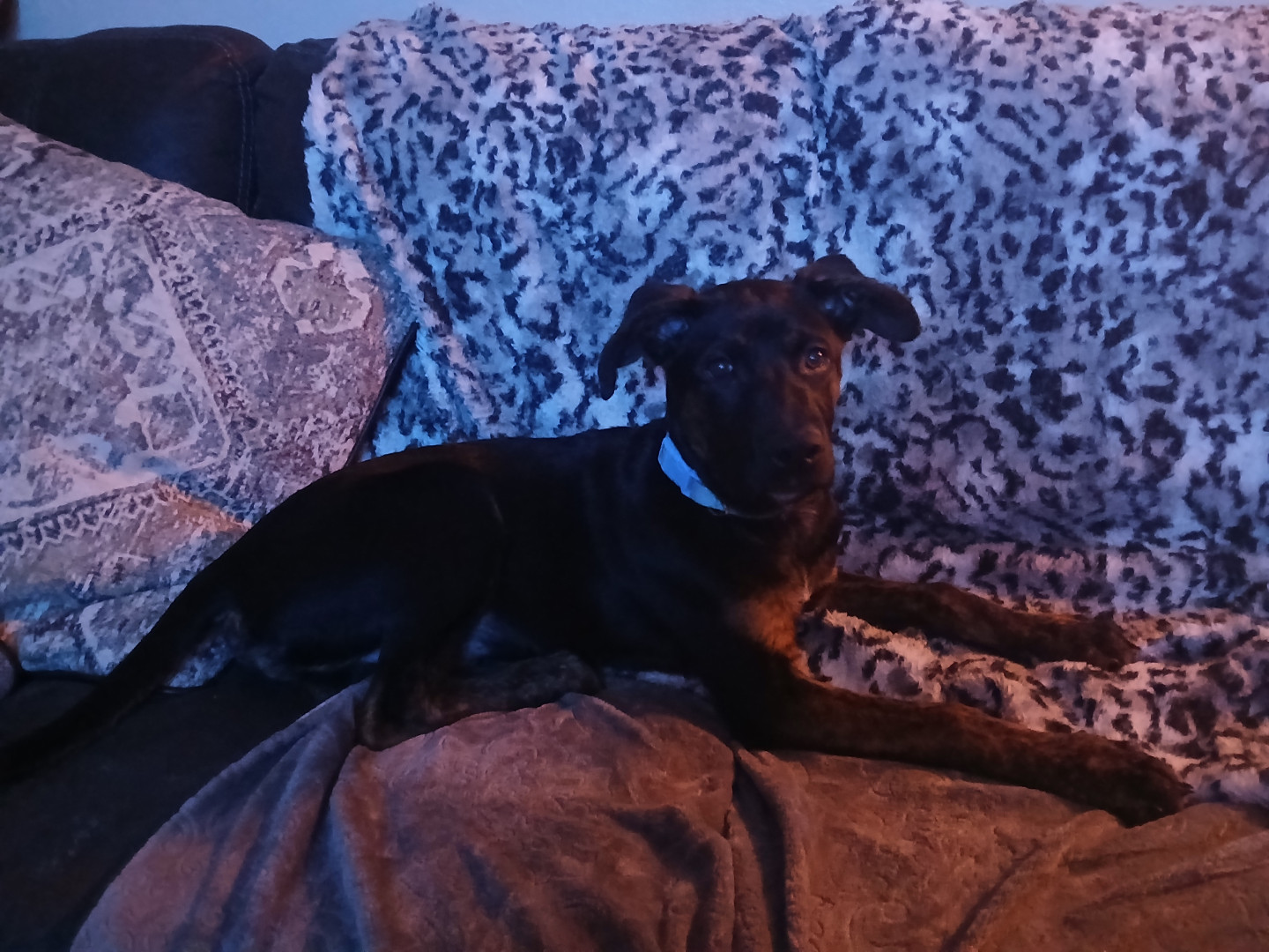 He's a boxer German shepherd mix, full of energy and loves to play he's 7 months old andLoves to throw his but around while playing