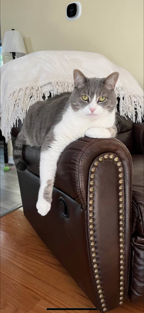 Sweet and loving! I work from home and he is like my assistant!Lol!I watch children, and he sits like a guard cat watching over us!😻