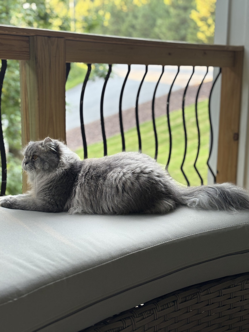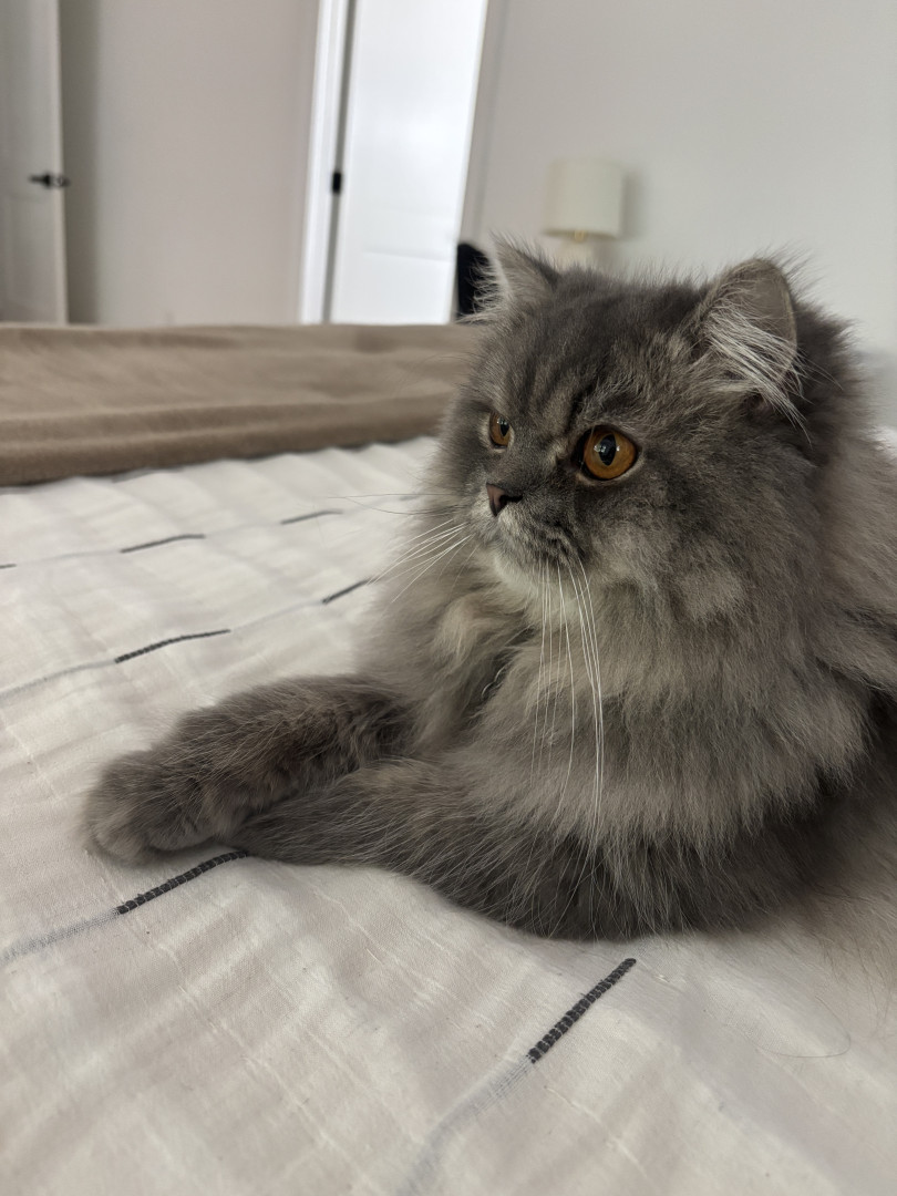 Max is a Persian cat with a sweet and calm expression. He has a thick, soft coat and an elegant presence that makes him look very special.
