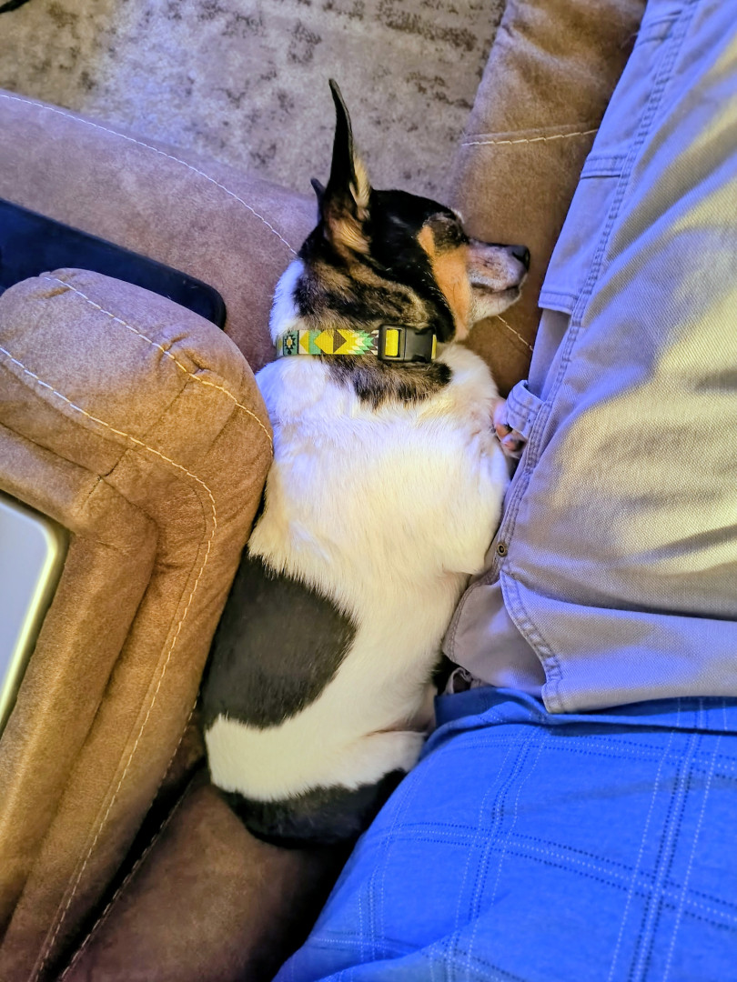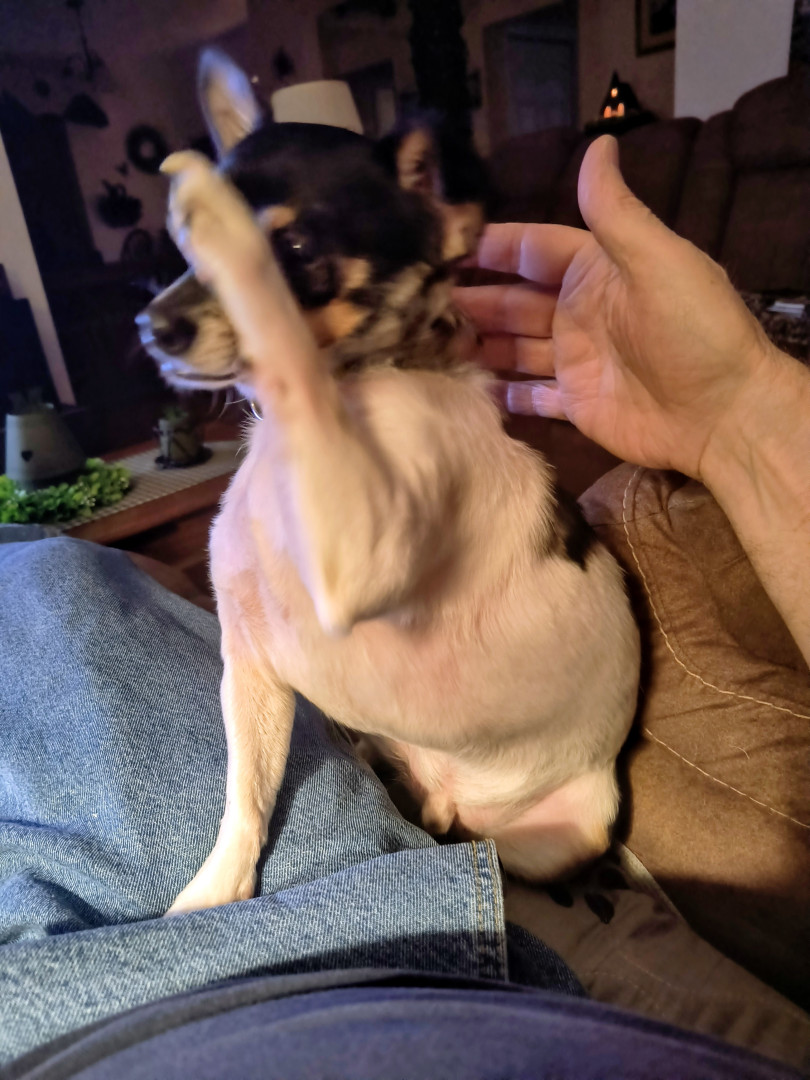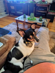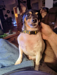 Max is a chieeenie, a cross between Chihuahua and wiener dog, 8 years old, loves walks and cuddling, sometimes very energetic.