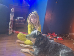 Max is a happy boy..he loves everybody and is not your typical heeler as he is very affectionate. Great with kids. He loves to herd them😅