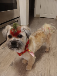 Max is super smart and intuitive. If im upset and crying, he will immediately jump up and start licking my tears away, and nudging to comfort me. Hes such a sweetheart, but he has a crazy side too! He loves to jump really high, and run around with his new toy! Hes a character!