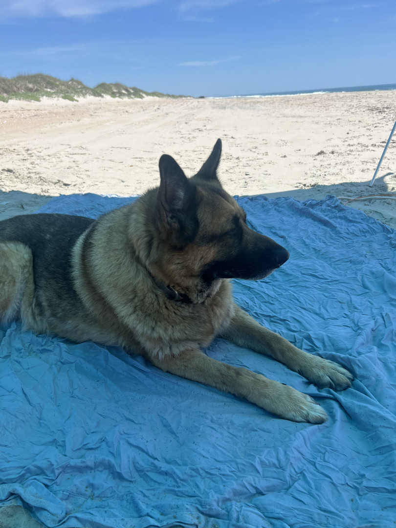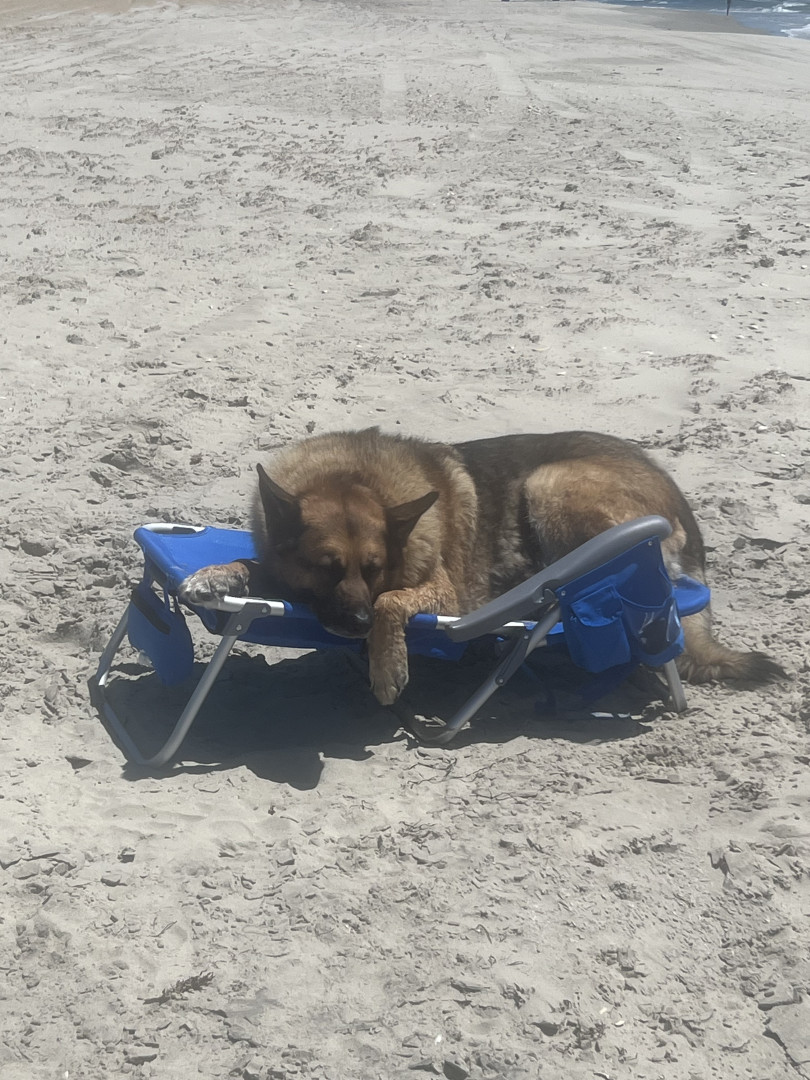 He is an 8 year old German Shepard. Maximus loves to go for rides his favorite place is ocracoke island I. NC. He is a gentle giant protecti
