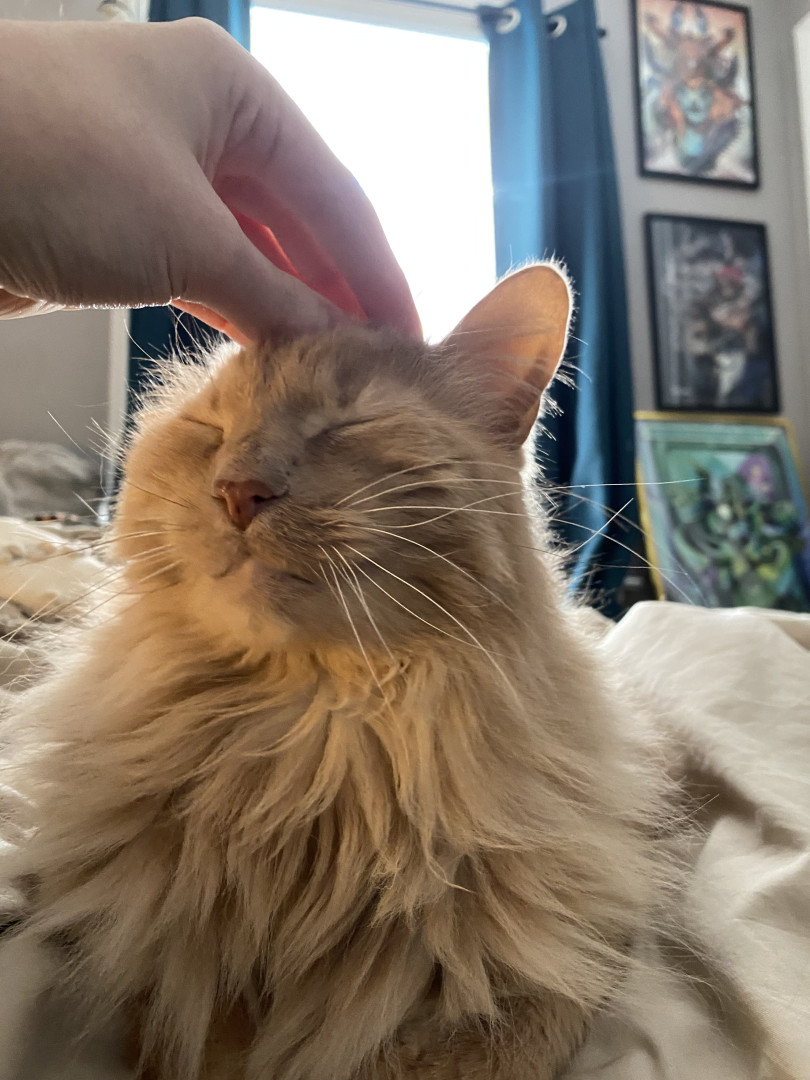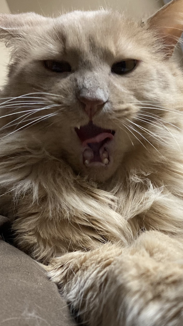 Maxo Kream is 15 pounds of fluff. He is 9 years old, and spends most of his days lounging, cuddling & purring. He loves food & treats.