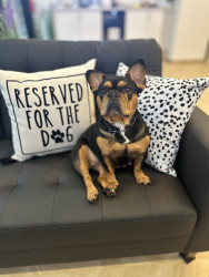 Maya’s most unique quality is her perfect balance of cuddle bug and quiet companion. She has an incredible way of always being exactly where she’s needed— At just three years old, this little Frenchie has mastered the art of comfort, turning everyday moments into cozy memories and making everyone around her feel loved without ever asking for the spotlight.
