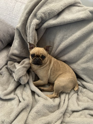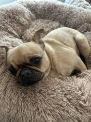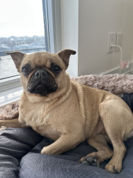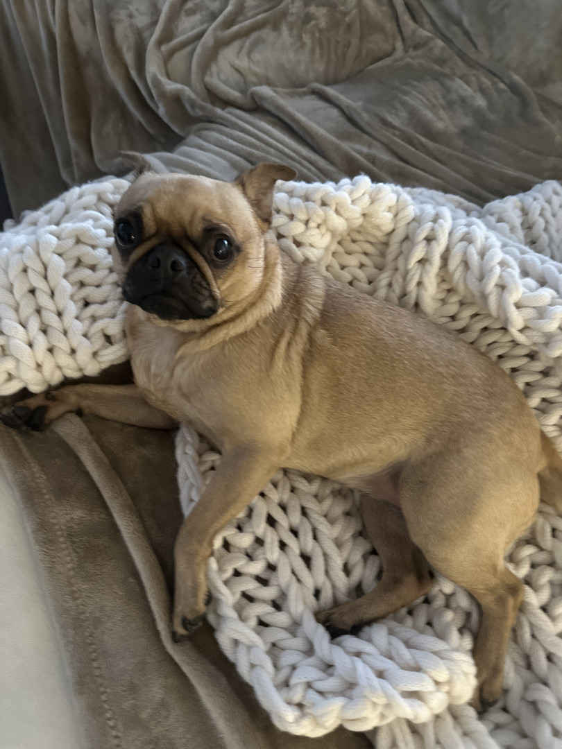 Our sweet Maya - the adorable pug-terrier mix with a heart of gold—cuddly, sweet, and always ready to snuggle her way into everyone’s day.