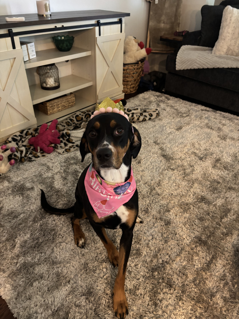 Meadow is a 3 yr old hound mix. Sassy, sweet and playful!! Helps in the kitchen by closing drawers for you! Loves to run and play outside!!