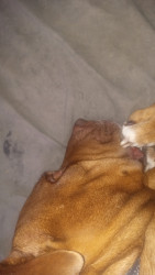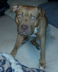MeatBall is a 70 lb friendly baby who loves his pacifier (water bottle). His paw slap (hand shake) is is only weapon (to men it's crucial
