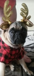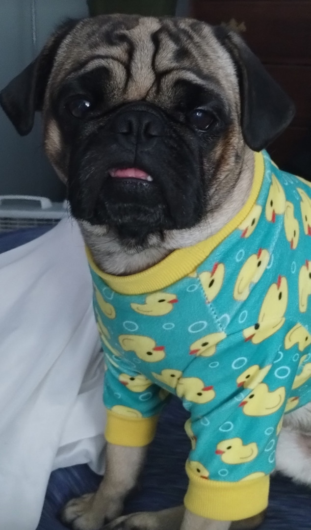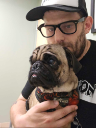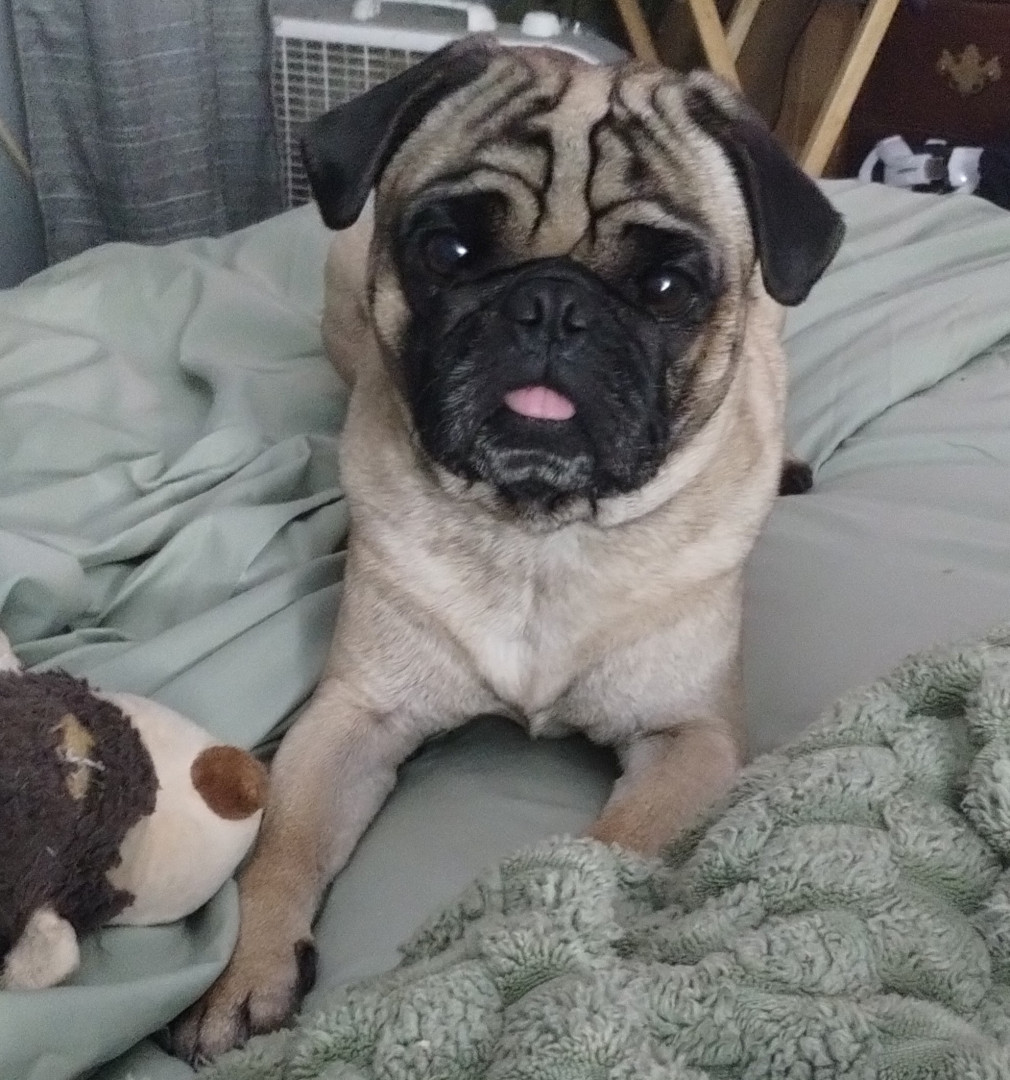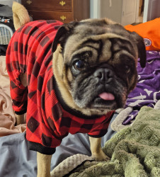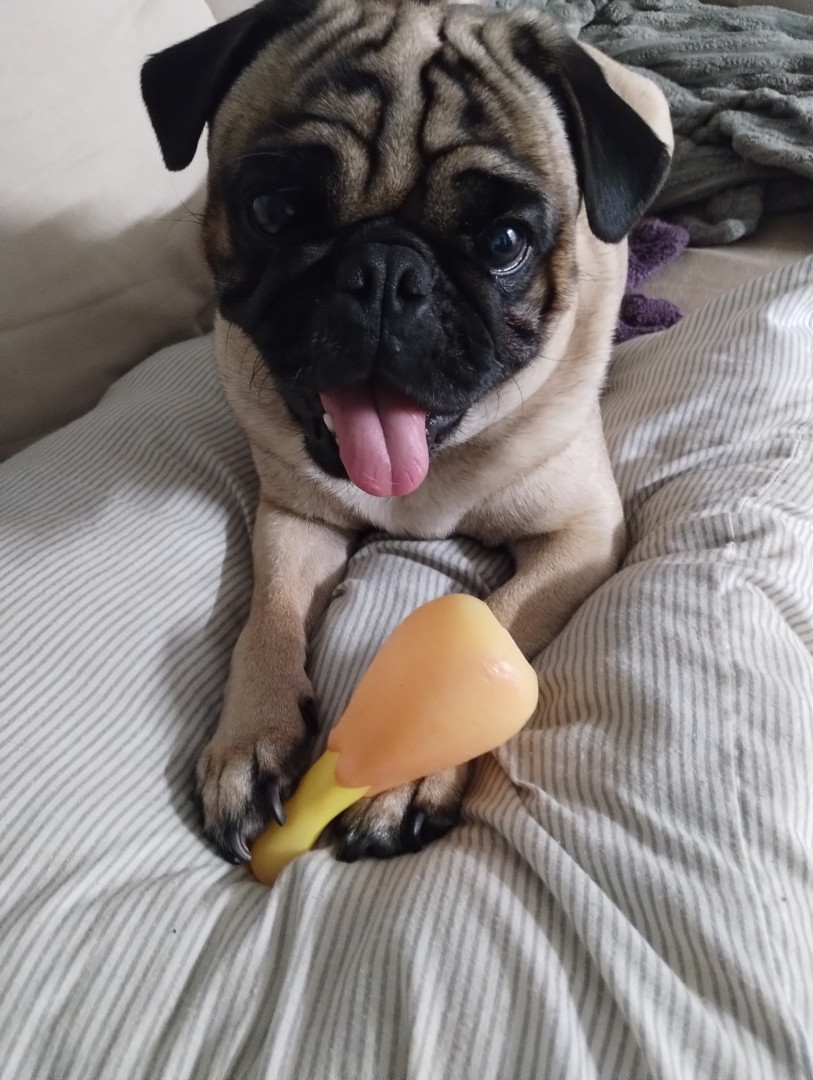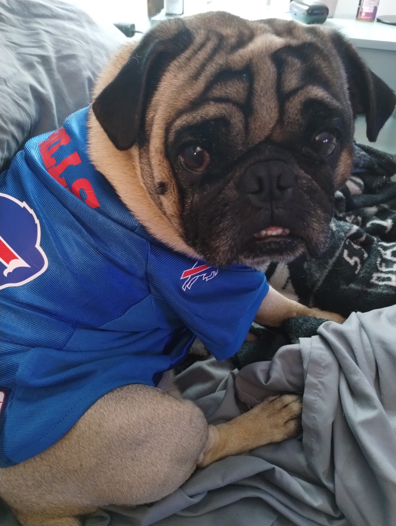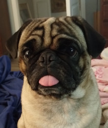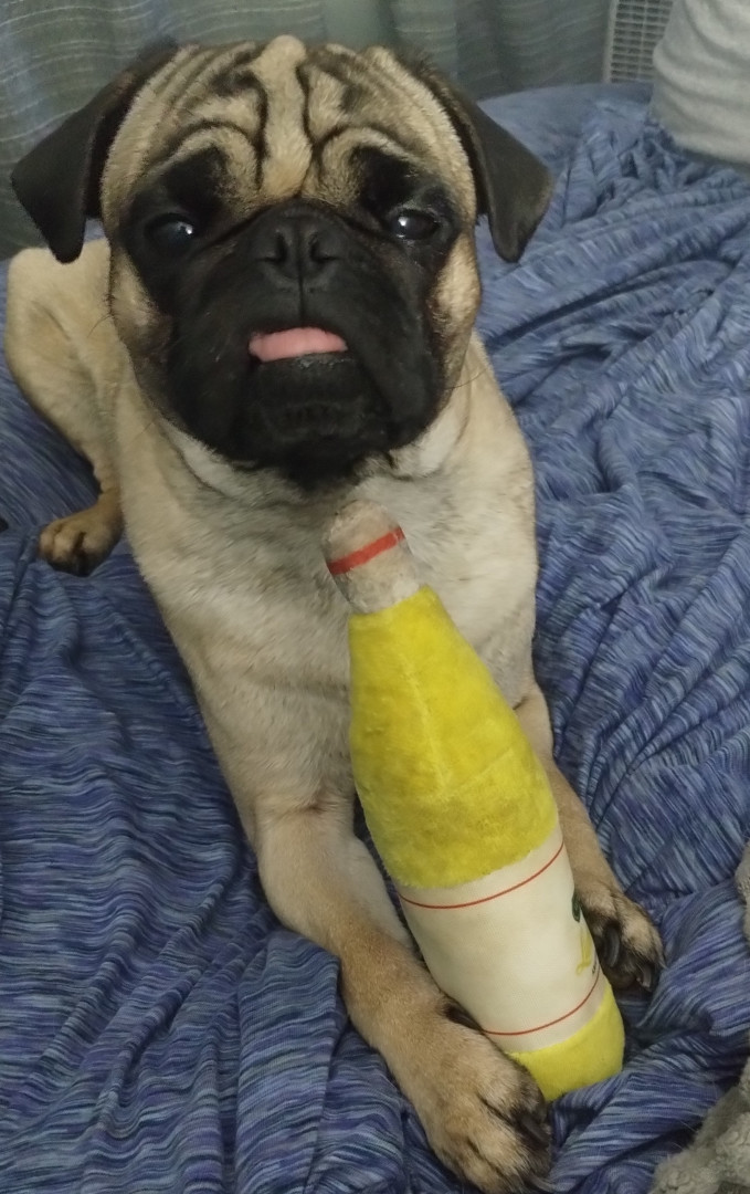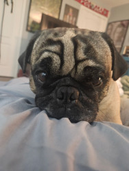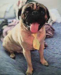 Meatball is the sweetest 4yr old pug who loves to play and nap. His fav foods are buffalo wings and pizza bones. Thank you!