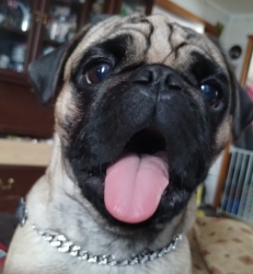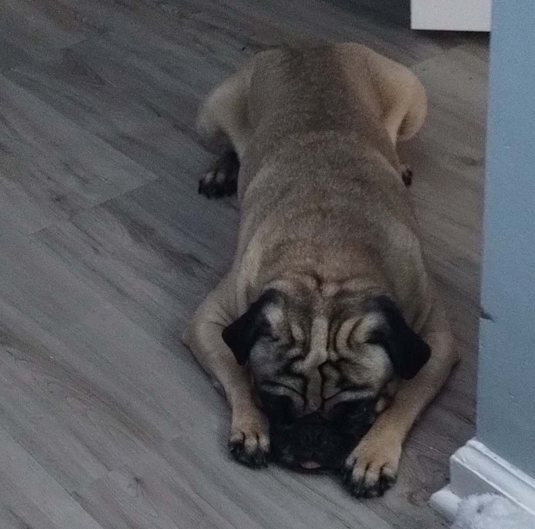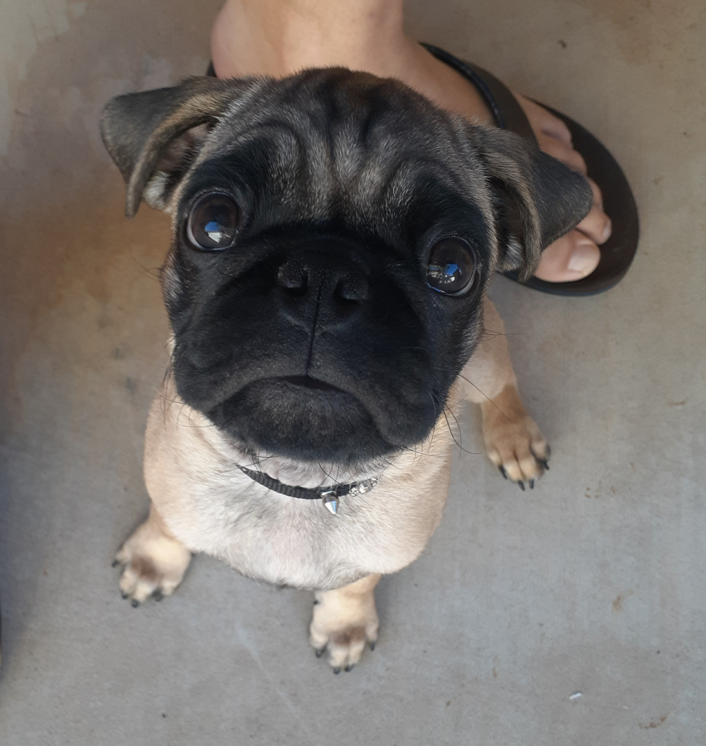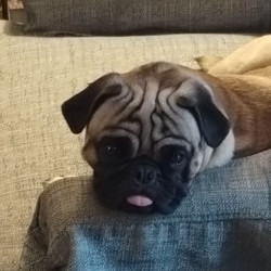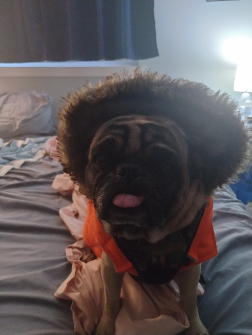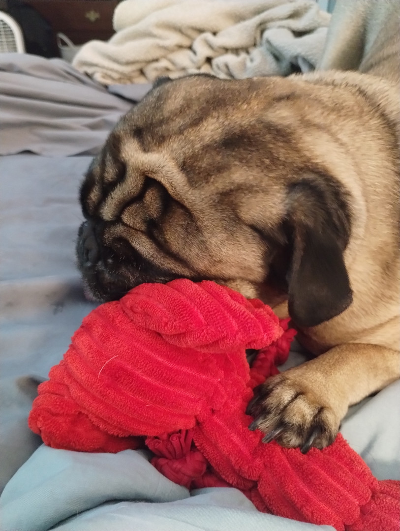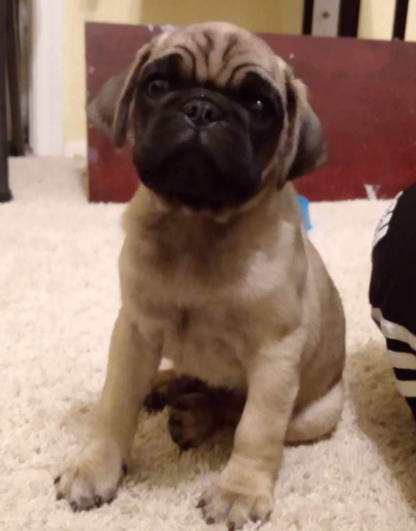 Meatball is the sweetest 4yr old pug who loves to play and nap. His fav foods are buffalo wings and pizza bones. Thank you!