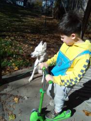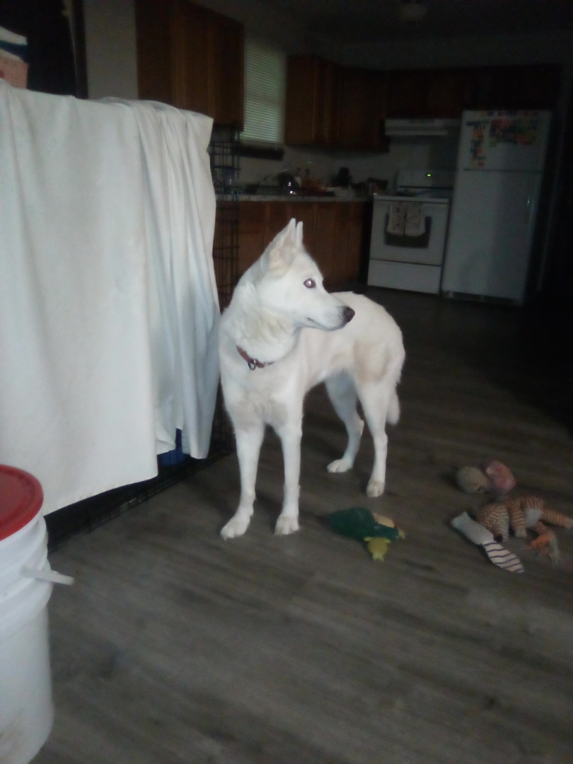 Big baby girl likes to run and sqweeky toys loves to meet people barks to go outside always looking for a friend to play with good with kids
