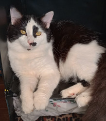 This is Meep-Meep, he will be 3 yrs old in December. He was born unable to meow. That's how he got his name. He is the most loving cat.