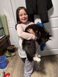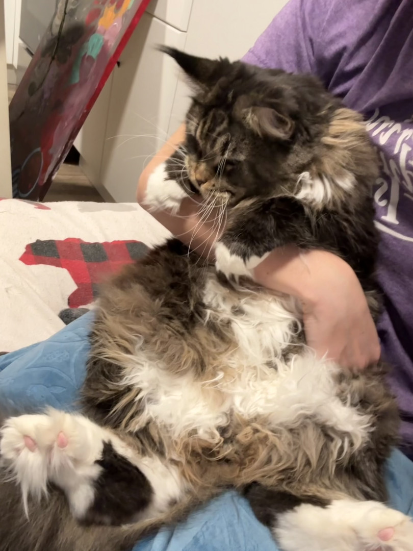 Megan is a sweet, gentle, forever kitten who plays soft loves everyone, moves slow and stays adorable even when she forgets what she’s doing