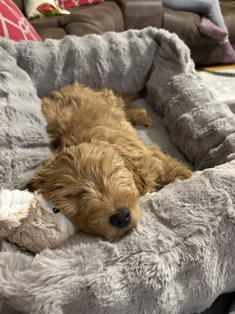 As he is currently teething, Melo’s favorite toy is a pink chicken flavored bone!
