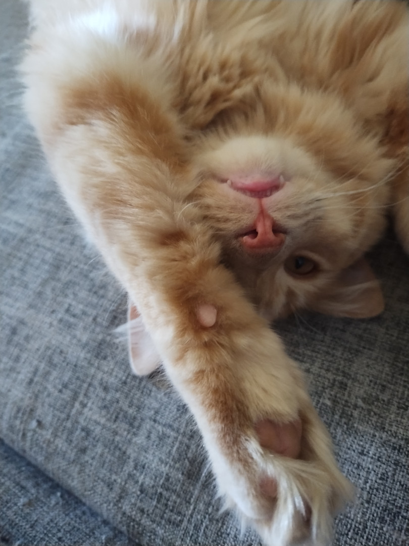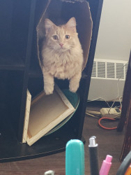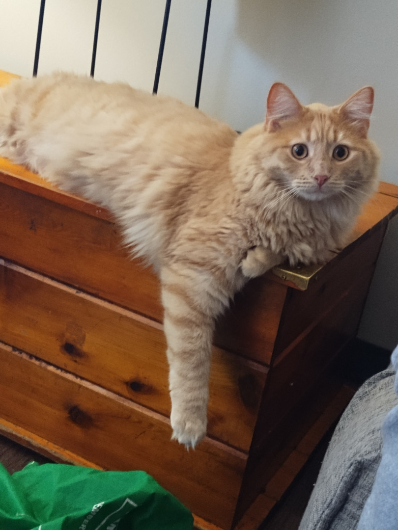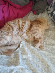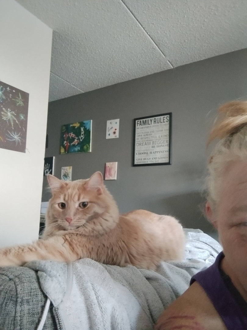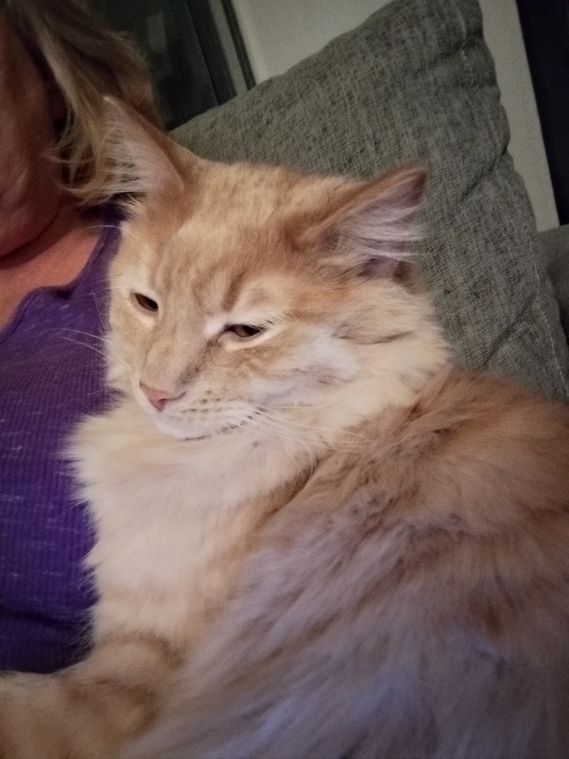 Meow meow is sweet boy. He is such a unique boy. He is huge and knows his king of the castle. I love when he comes in for snuggles. He just a big spicy baby really