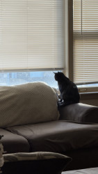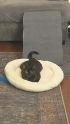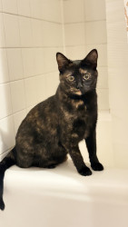 Playful, chatty, runs saying meow meow meow, hunts invisible fluff, loves cuddles and independence. 6am treat boss. Our heart stealer.