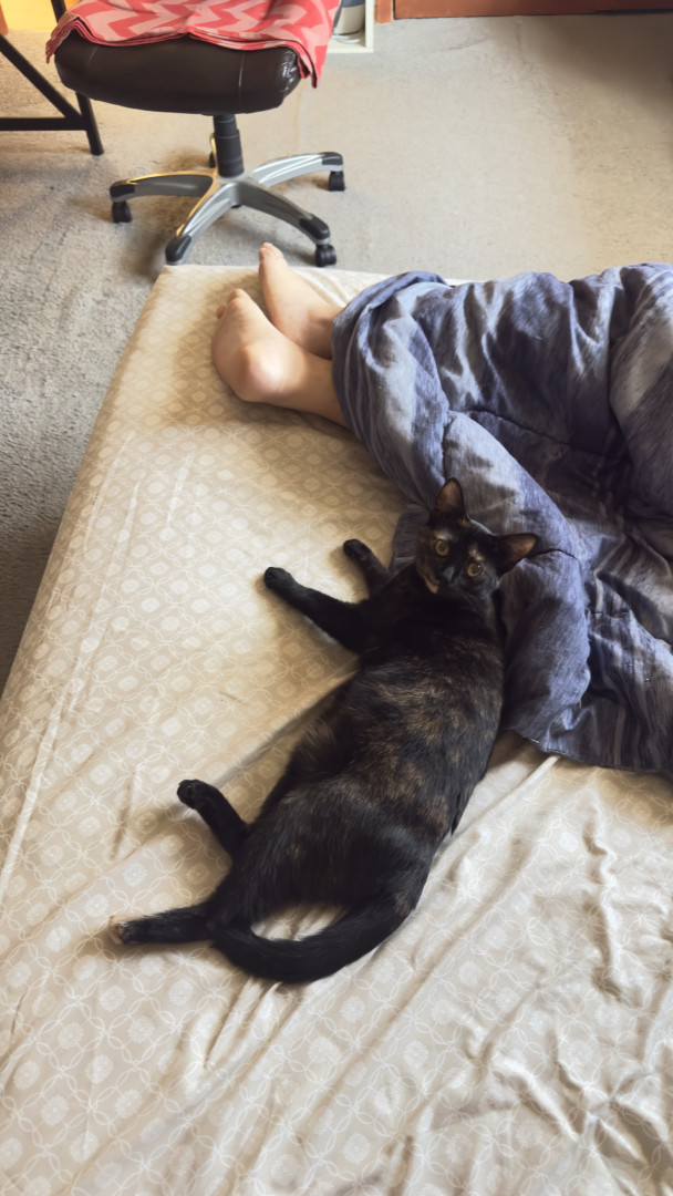 Her personality is truly one of a kind. She’s sweet, playful, and full of attitude — affectionate, but always on her own terms. She gets bored fast, hunts ‘invisible’ things only she can see, and she brings so much life to our home. She also talks all day, with a different little voice depending on what she’s trying to say — it’s hilarious. She’ll cuddle right next to us, but never for too long, just enough to remind us she loves us in her own funny, special way.