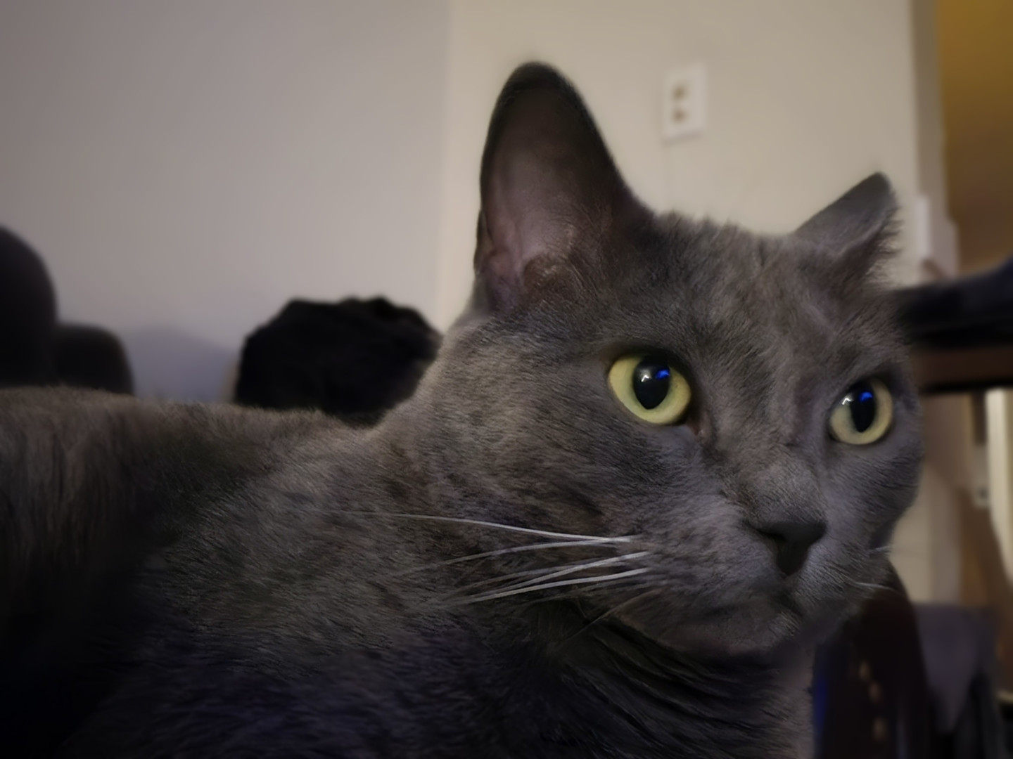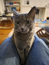 Meowser is a six-year-old Russian blue in Chicago. She was found as a kitten in Iowa City, IA around Thanksgiving 2019.