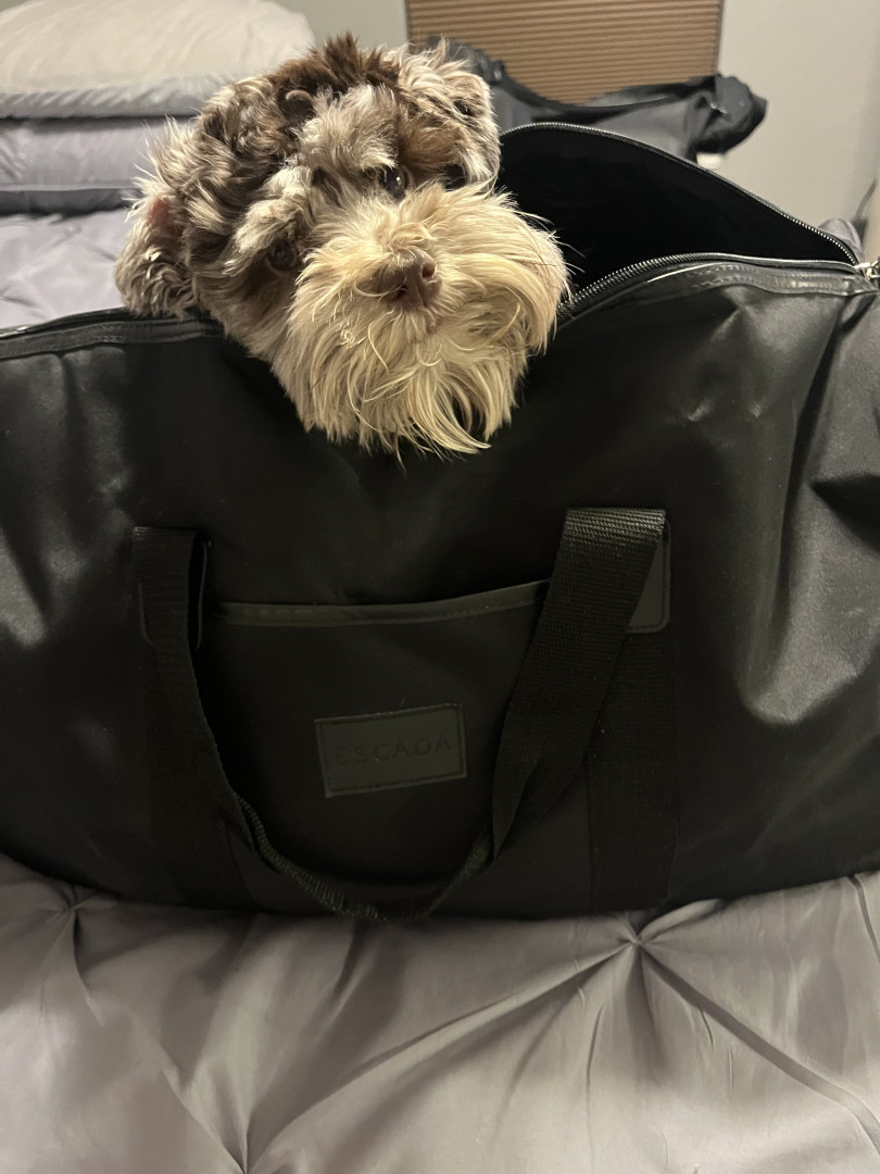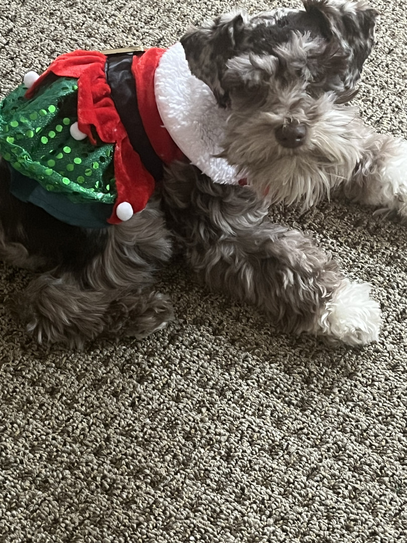 Eight months old and adorable. Merle brown coloring hence the name Merlie.