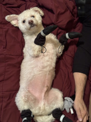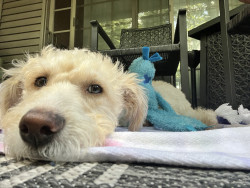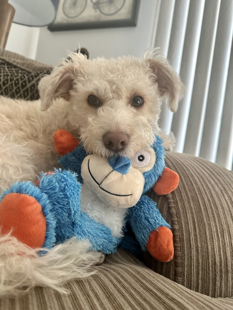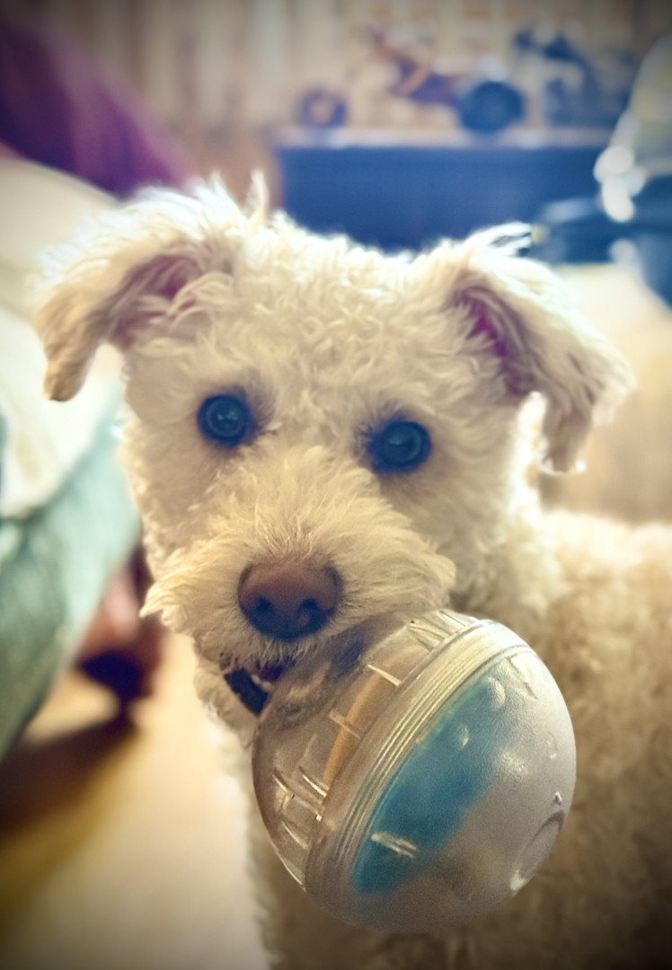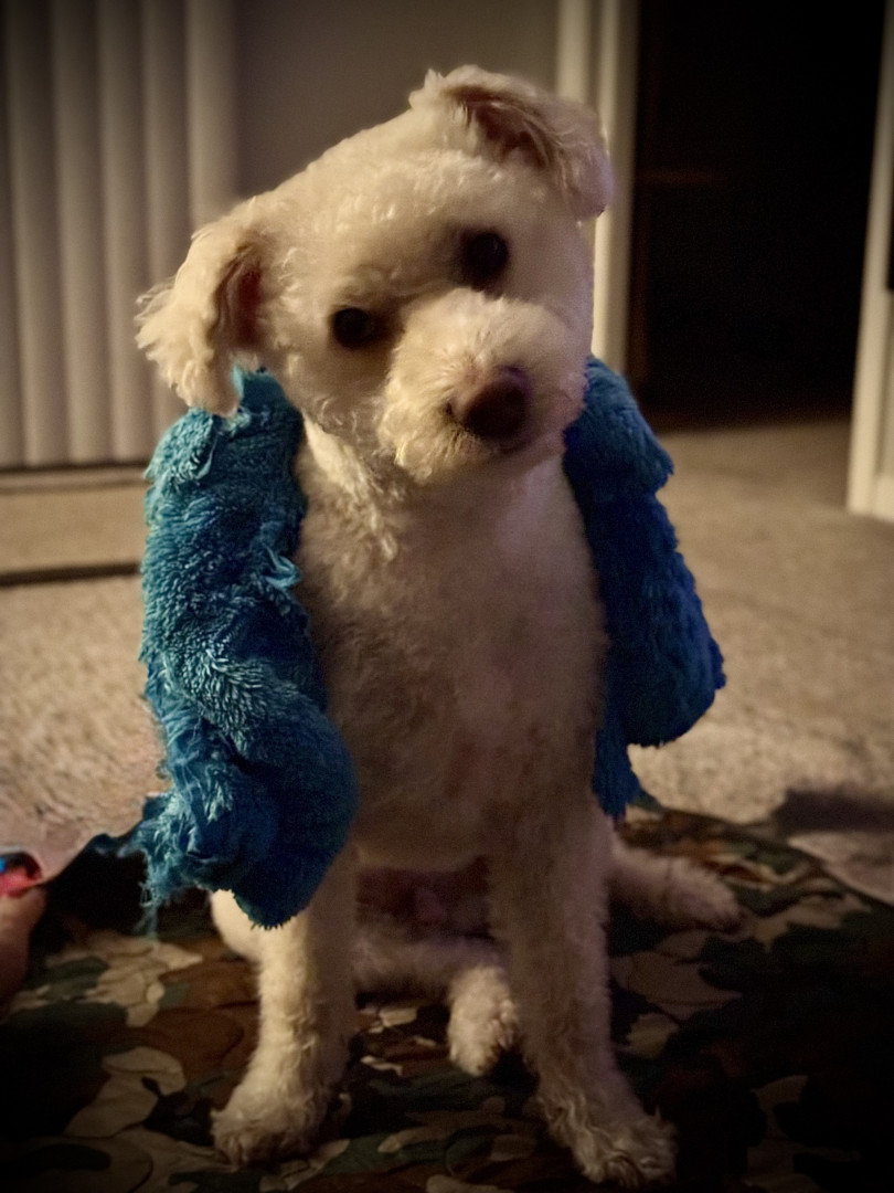 Receive Text UpdatesMerlin’s favorite toy hands down is his Tug O’ War Rope. He never leaves home without it! Merlins go to-treat…..Medium Beef Center Cut Femur Bones the holy grail of dog treats according to him.