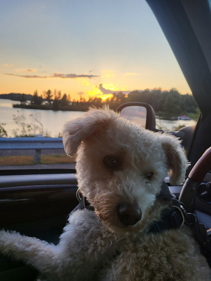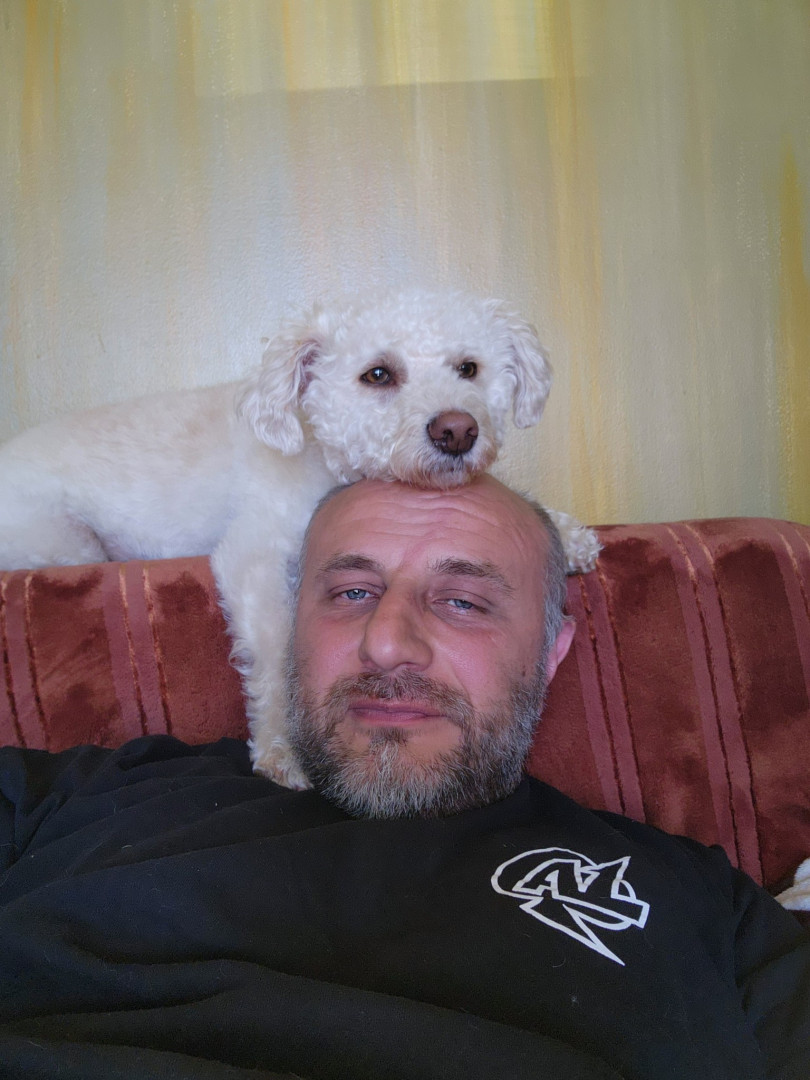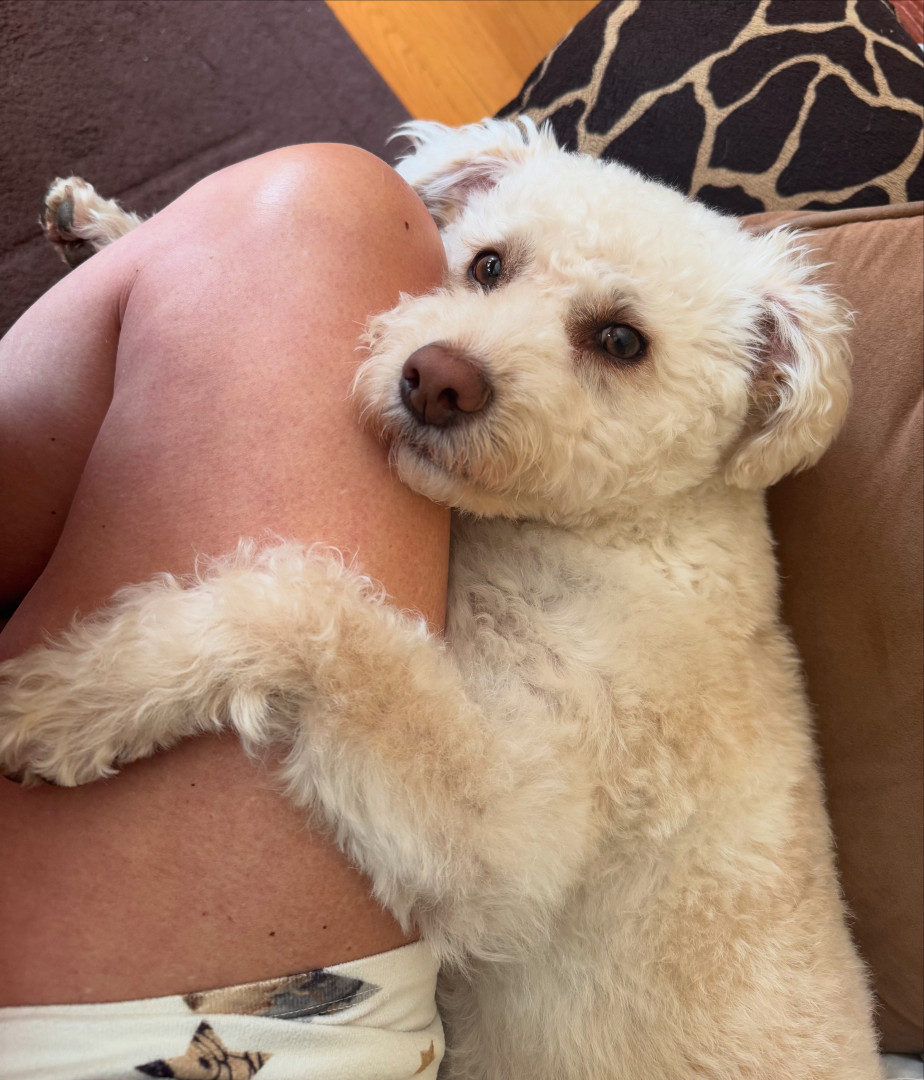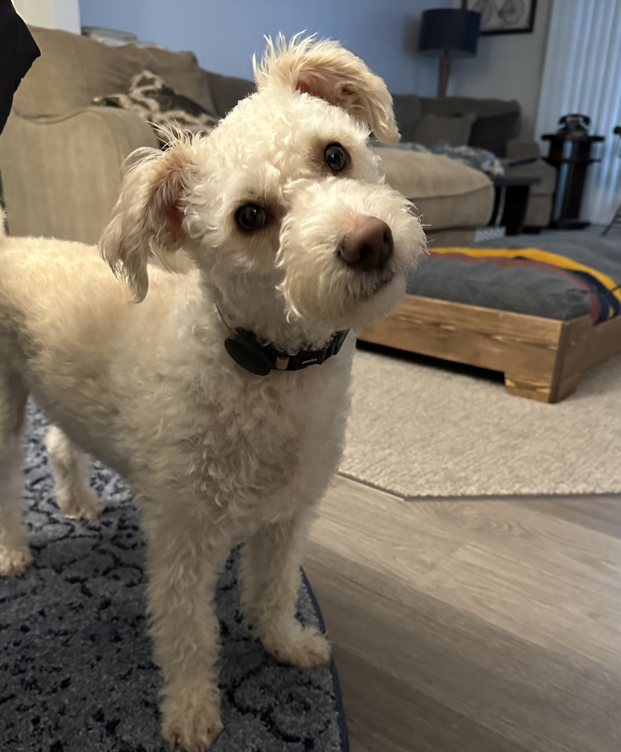Merlin is remarkably empathetic. He’s the kind of dog who’ll comfort you with one on paw on your lap, a tilt of his head, and stare so full of understanding that you will start questioning why humans can’t be this good at feelings.