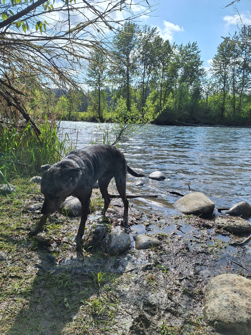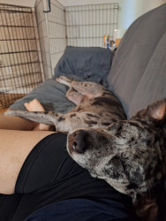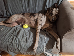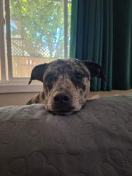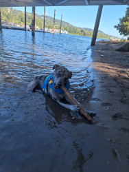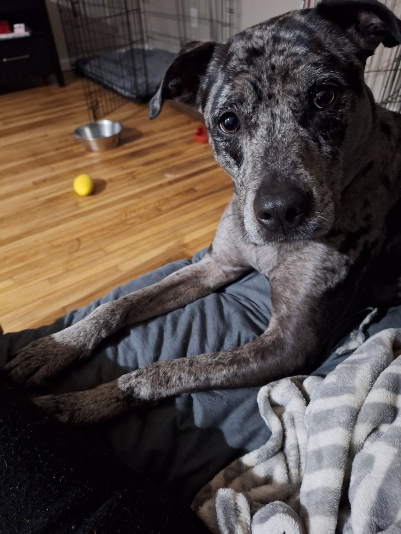 Merlin is a snuggle-bug who loves to play with his ball, swim, go for walks, and chase after critters.