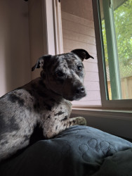 Merlin is a rescue from Far West Texas. His mother is a street dog who still has not been captured. He had a hard beginning but has made so much progress and is becoming more resilient each day!