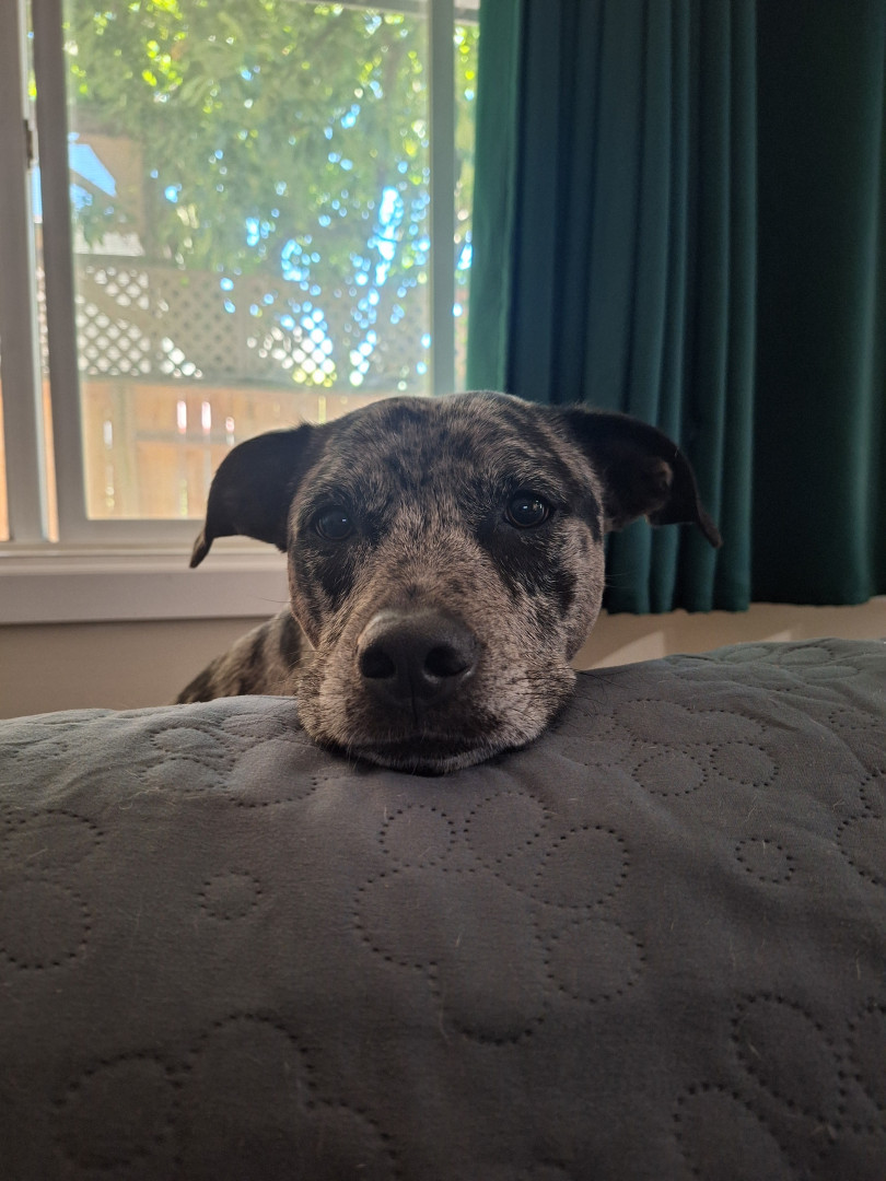 Merlin is super goofy and loves to make people laugh. He will do something silly, get a laugh, and then wag his tail and do it again! He thinks he is pretty hilarious. And he really is ❤️