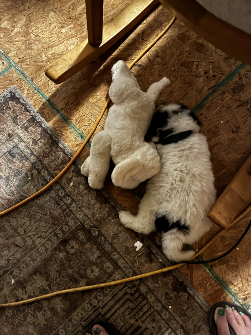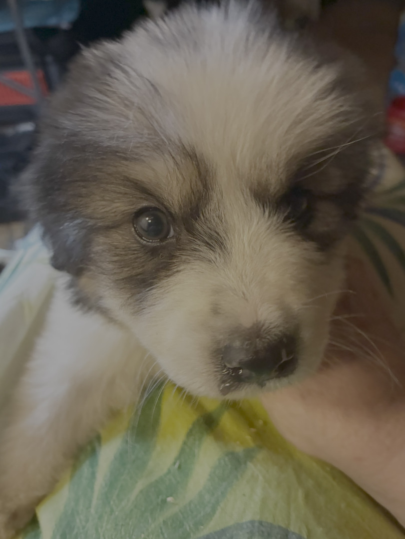 Merlin is a 7 week old Badger Faced Great Pyrenees puppy who is sweet and playful despite having a rough start in life. He is a survivor.